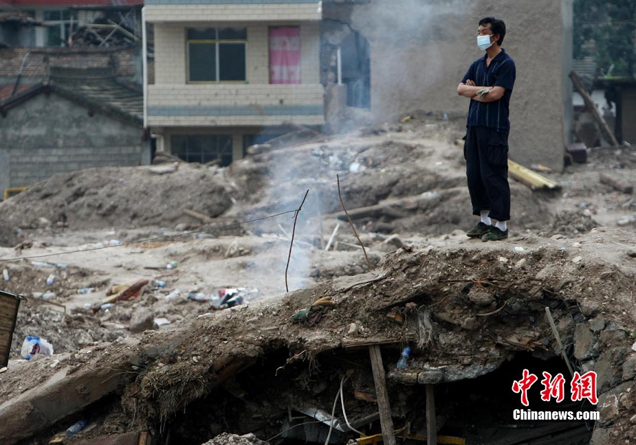 甘肅舟曲縣發(fā)生特大泥石流后,截至8月19日,已導(dǎo)致1364人遇難,401人失蹤,已解救1243人。洪災(zāi)已過去十多天,雖然廢墟中已無生命跡象,但洪災(zāi)生還者還在守望舟曲不愿離去。目前,搶險救災(zāi)工作由應(yīng)急救援逐步轉(zhuǎn)到受災(zāi)群眾進(jìn)一步安置、河道淤泥廢墟清理、恢復(fù)正常生產(chǎn)生活秩序和重建規(guī)劃。中新社記者 杜洋 攝