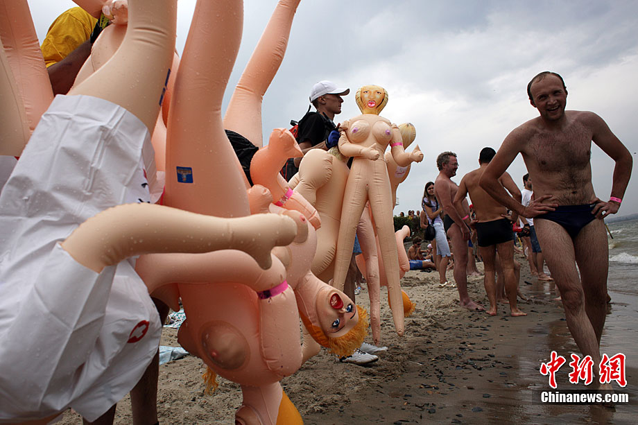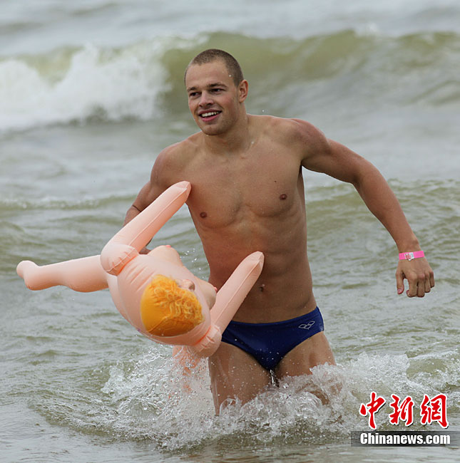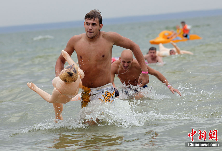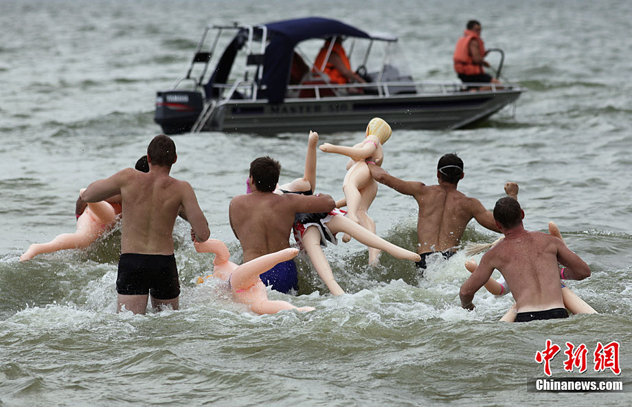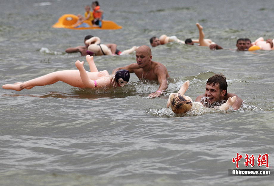 當(dāng)?shù)貢r(shí)間8月22日,一場(chǎng)別開聲面的搞笑游泳比賽在俄羅斯西伯利亞城市新西伯利亞舉行,數(shù)十名俄羅斯壯漢懷抱“充氣娃娃”躍入河中進(jìn)行游泳比賽。不過(guò),從比賽實(shí)況來(lái)看,很顯然這些參賽者并沒有把充氣娃娃當(dāng)“伴侶”來(lái)對(duì)待,多半都當(dāng)成游泳圈,使得氣氛既搞笑卻又帶點(diǎn)詭異。