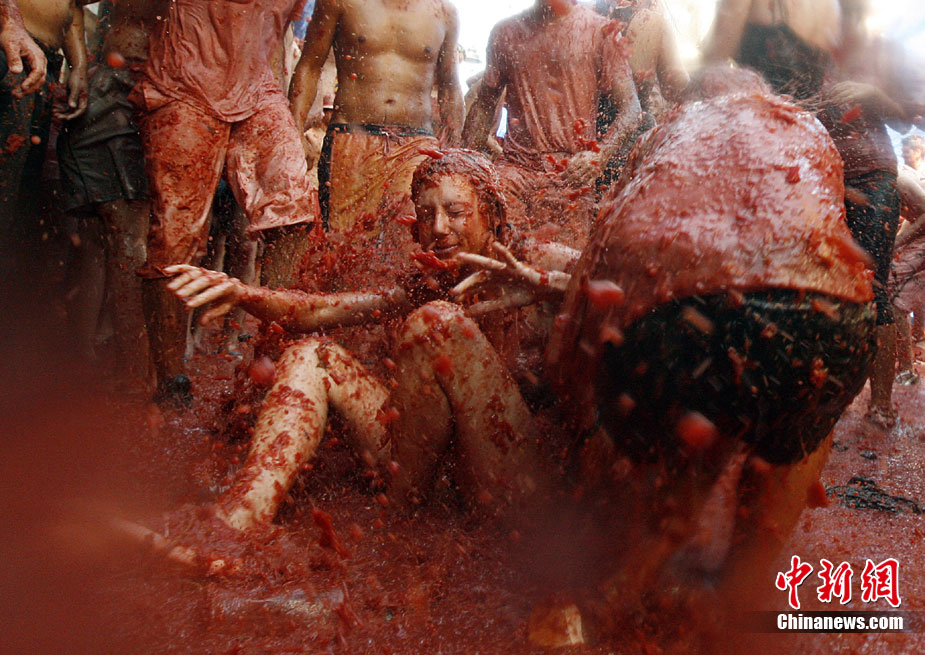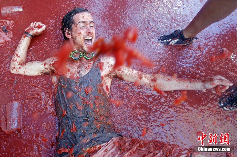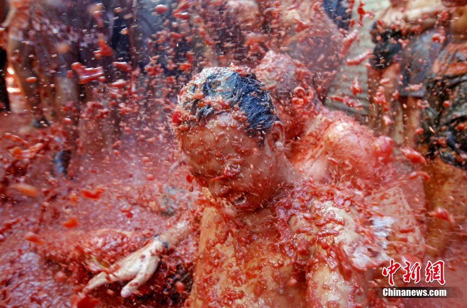 8月25日,西班牙東南部小鎮(zhèn)Bunol迎來傳統(tǒng)的西紅柿狂歡節(jié)。超過4.5萬人參加了此次活動,預計消耗了超過100噸西紅柿。這也是世界上最大規(guī)模的“番茄大戰(zhàn)”。