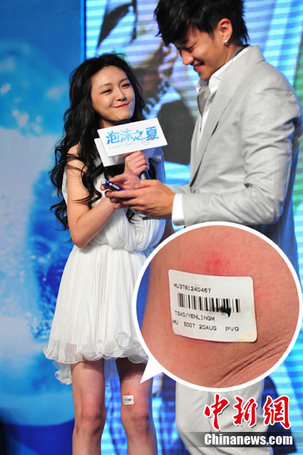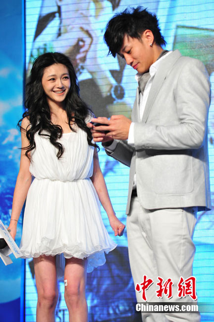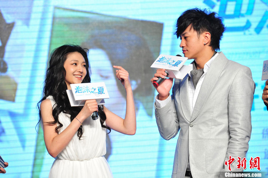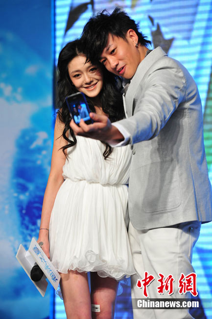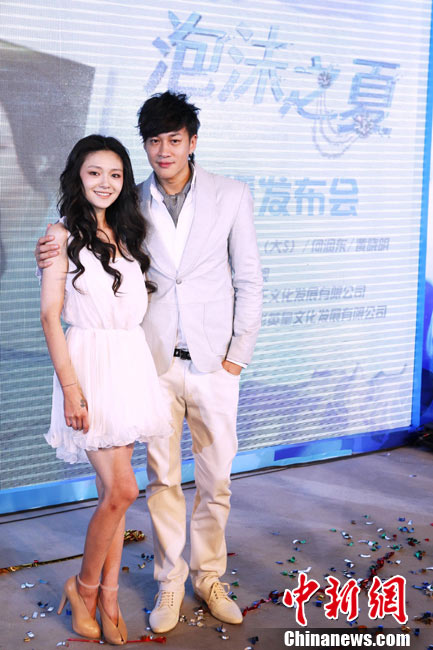 8月25日,偶像劇《泡沫之夏》在北京舉行了開播發(fā)布會(huì),主演大S與何潤(rùn)東出席。時(shí)尚女王大S浪漫卷發(fā)和夢(mèng)幻白裙造型似童話中的公主,與“夢(mèng)幻泡沫 浪漫之夏”的主題十分貼合。何潤(rùn)東也默契地以西裝出席,兩人十分登對(duì);顒(dòng)中,這對(duì)不斷傳出緋聞的熒屏最佳搭檔不僅毫不避嫌地互相夸獎(jiǎng),何潤(rùn)東還當(dāng)眾與大S頻頻用手機(jī)自拍親密合影停不下來,還現(xiàn)場(chǎng)將自拍照上載至微博。中新社記者 李學(xué)仕 攝