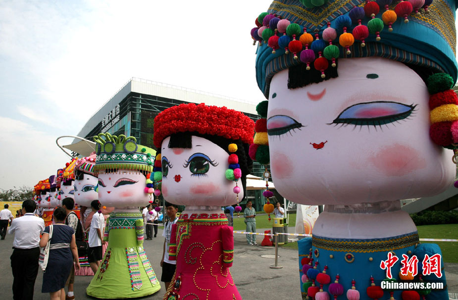 8月27日,上海世博會云南活動周正式拉開帷幕。來自云南的26個巨型民族寶寶集中亮相開幕式,它們代表云南省內(nèi)的26個民族,歡迎海內(nèi)外嘉賓游客前來參觀。中新社記者 保旭 攝