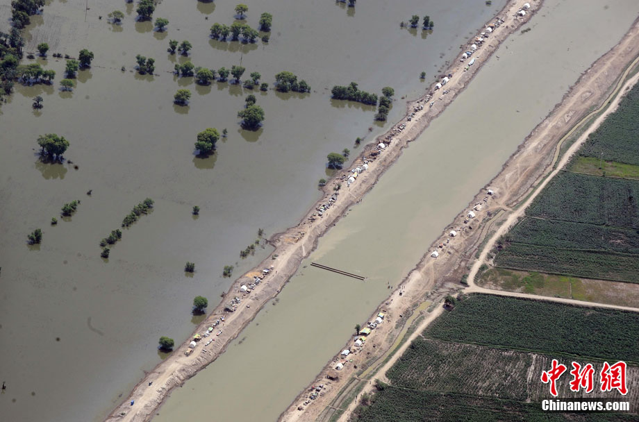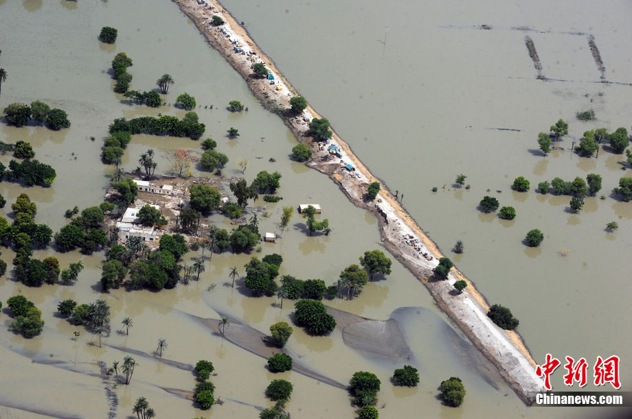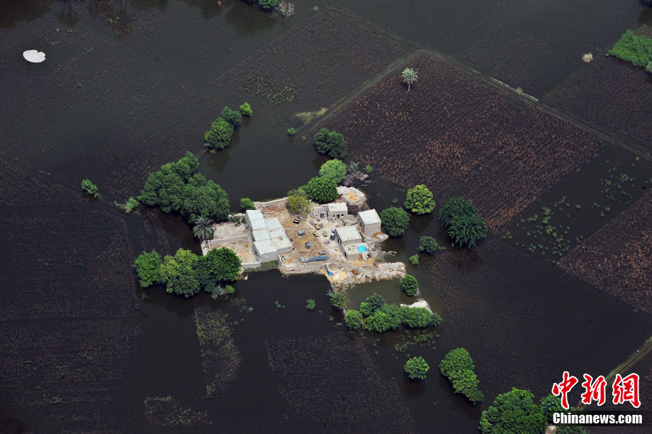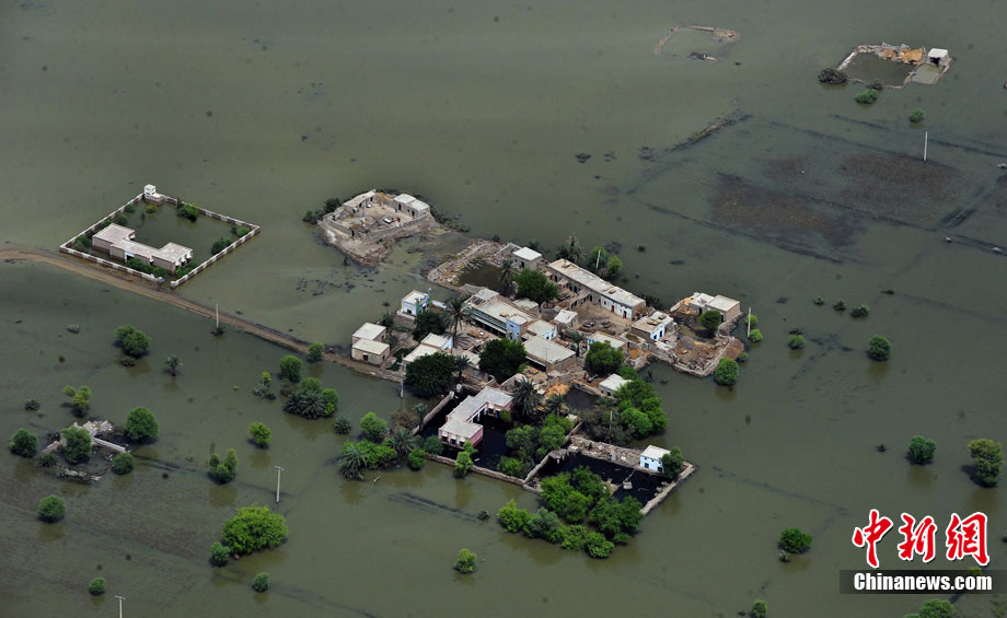 8月24日,聯(lián)合國人道事務協(xié)調廳表示,目前仍有80萬巴基斯坦災民被洪水圍困。圖為航拍巴基斯坦被洪水淹沒的羅錢地區(qū)。
