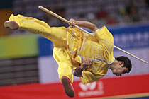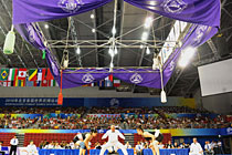8月28日晚,北京首屆世界武搏會(huì)開幕式上,演員在“從天而降”的“線陣”中表演,在威亞的帶動(dòng)下上下飛舞,如同在水中漫步。這個(gè)由12.5萬(wàn)根腈綸線和兩層薄紗組成的“線陣”,成為視頻多媒體展現(xiàn)的載體,為全場(chǎng)觀眾提供了360度視角的觀看空間。中新社發(fā) 蘇丹 攝