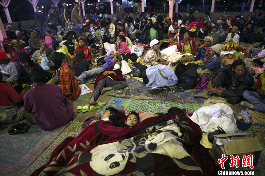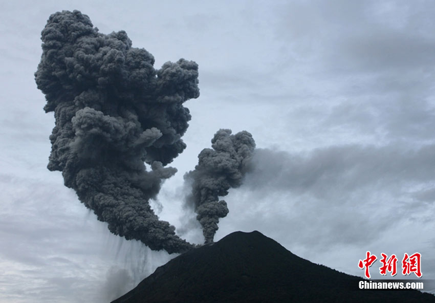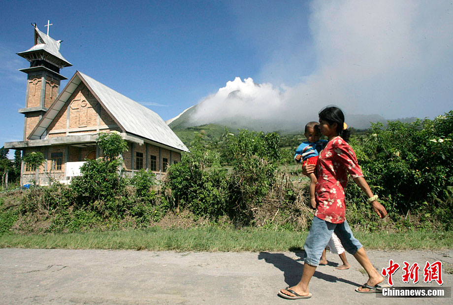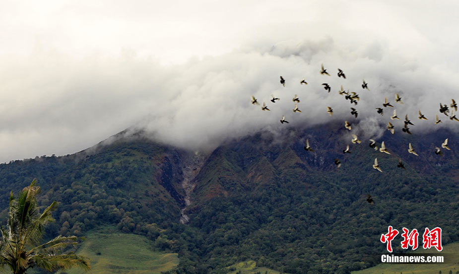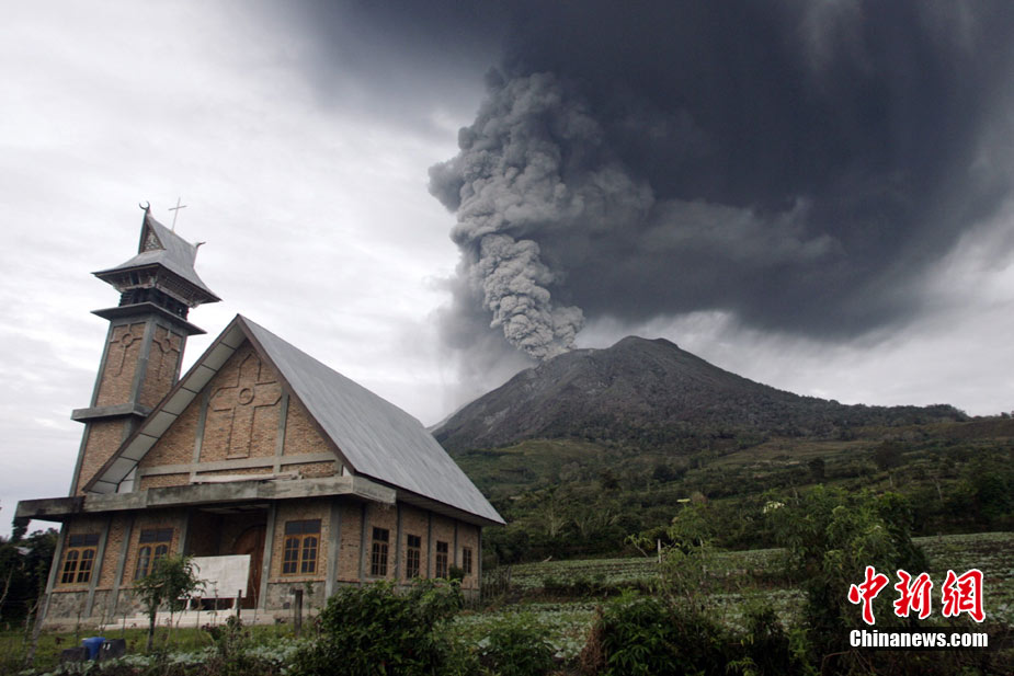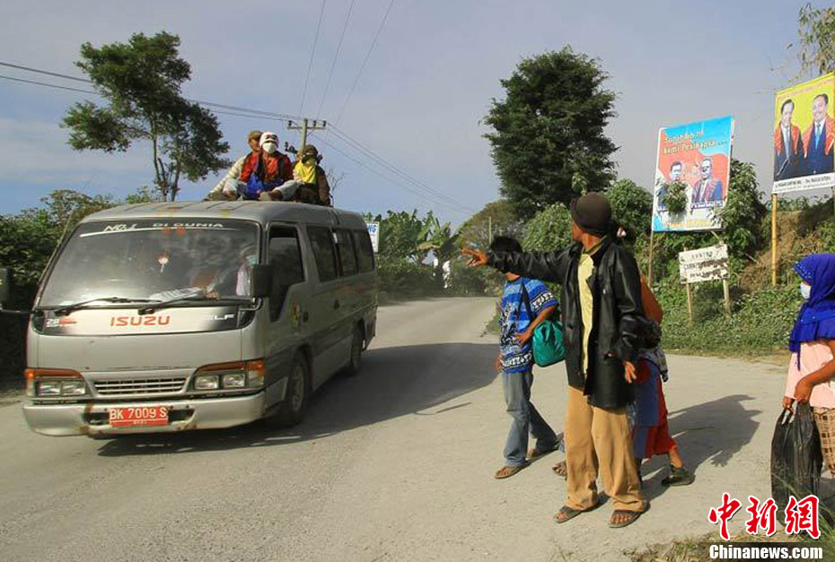 印尼錫納朋火山30日再次噴發(fā)并持續(xù)了將近15分鐘;鹕絿姵龅臐鉄熀突鹕交抑辽偕2000米的高空。這比29日錫納朋火山的首次噴發(fā)的規(guī)模更大。空氣中彌漫著濃濃的硫磺味。