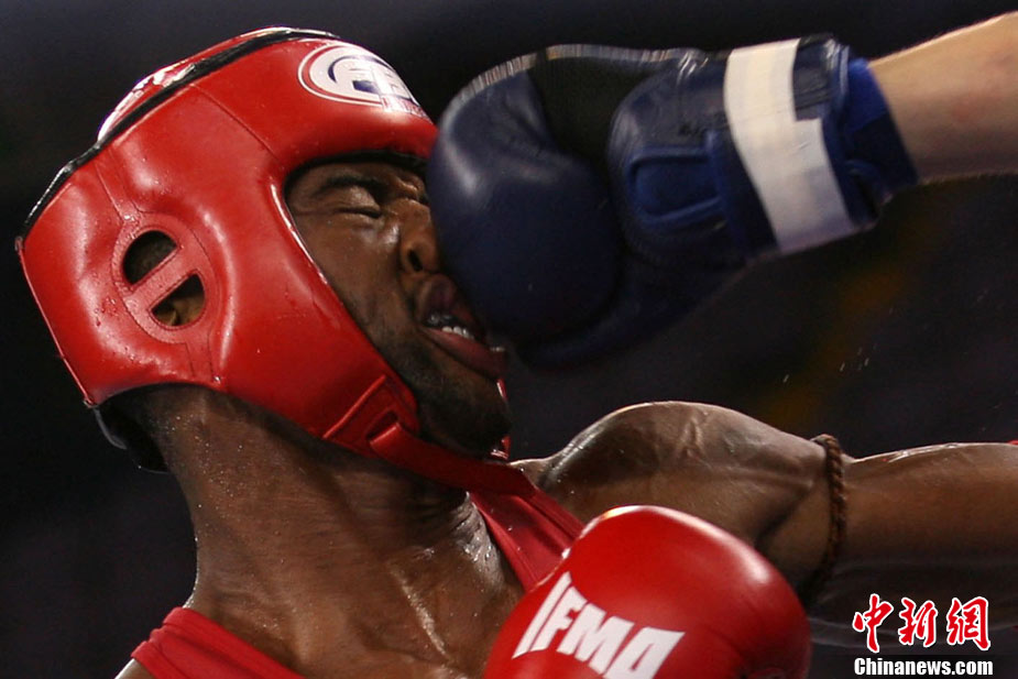 8月31日,2010年北京首屆世界武搏運(yùn)動(dòng)會(huì)泰拳比賽在北京奧體中心體育館進(jìn)行了11個(gè)級(jí)別半決賽的較量,包括8個(gè)級(jí)別的男子半決賽和3個(gè)級(jí)別的女子半決賽。 中新社發(fā) 盛佳鵬 攝