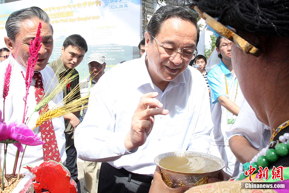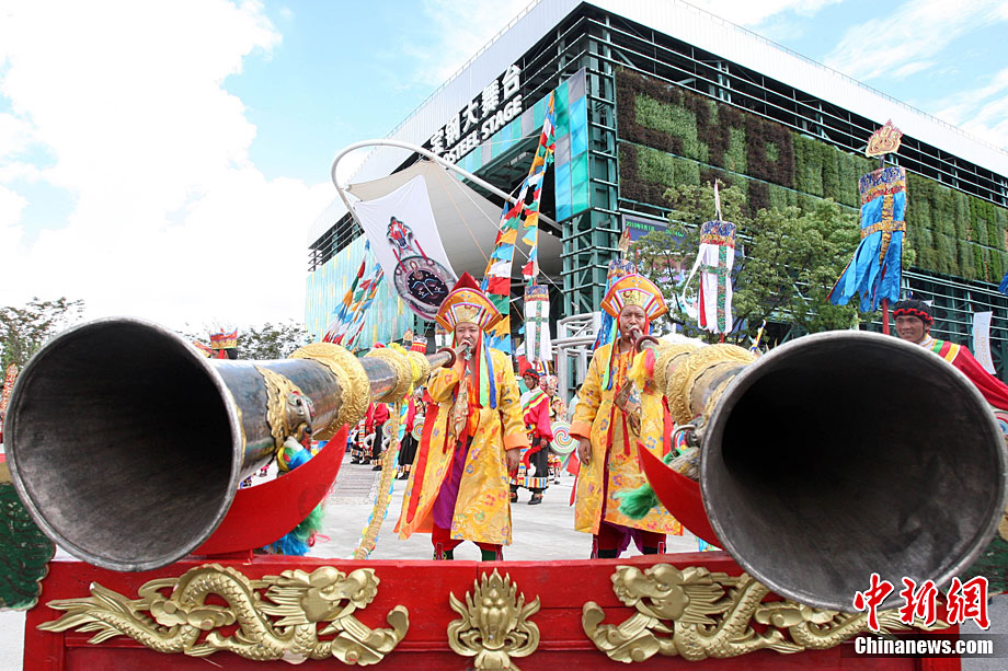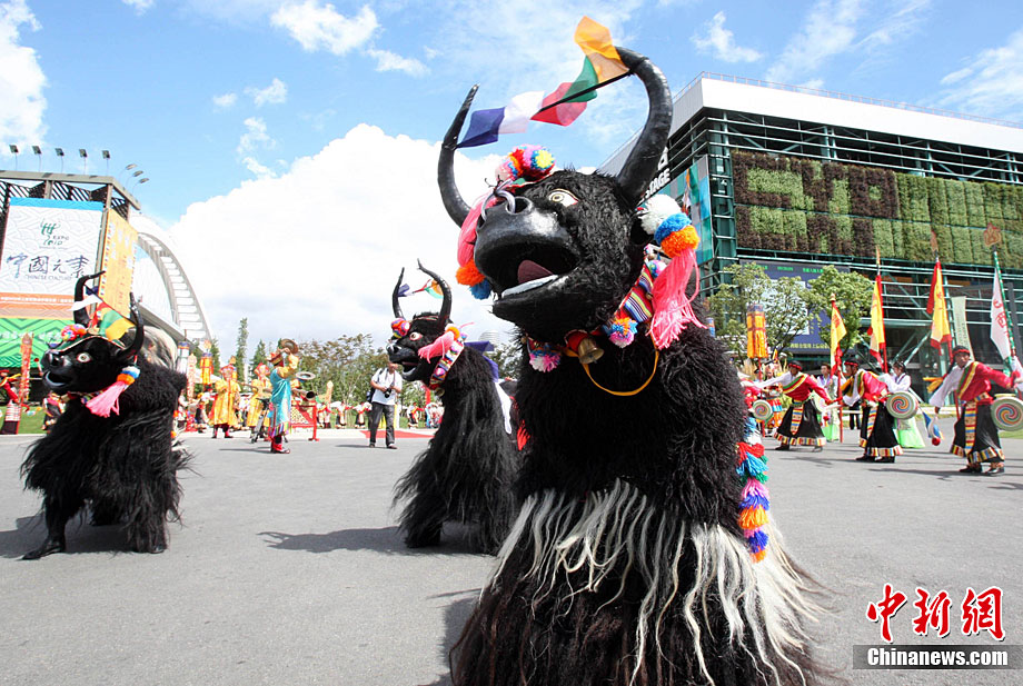 9月1日,為期5天的上海世博會(huì)西藏周在世博園拉開帷幕;顒(dòng)周期間,將先后有《天上西藏》寶綱舞臺(tái)演出、非物質(zhì)文化遺產(chǎn)展示、街頭花車巡游表演、慶典廣場(chǎng)《雪域歡歌》、特色產(chǎn)品展示等活動(dòng)與參觀者見面,全方位展示西藏人文魅力。圖為西藏活動(dòng)周開幕現(xiàn)場(chǎng)吹響開幕號(hào)。中新社記者 湯彥俊 攝