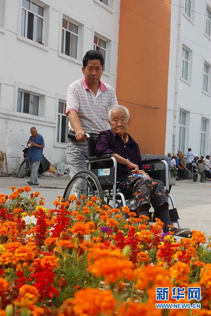 9月1日,在黑龍江省東寧縣社會敬老院,李鳳云老人在義子高自祥的照料下散步。據(jù)李鳳云老人講述,她原名李壽段,1922年出生于朝鮮平壤一個窮苦農(nóng)民家庭,19歲那年為治療母親重病賣身日本“工廠”,隨日本人來到黑龍江省阿城市,后被日本兵抓到東寧要塞的“慰安所”內(nèi),直至日本投降,才逃出苦海,在東寧縣大肚川鎮(zhèn)隱瞞身份居住下來。圖片來源:新華網(wǎng)