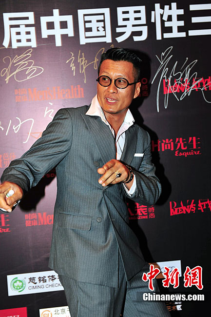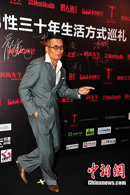 9月2日晚,作為2010“8.3國(guó)際男人節(jié)”的重要組成部分,也是高潮環(huán)節(jié)的“首屆中國(guó)男性三十年生活方式巡禮”,在北京舉行。數(shù)十位活躍在商業(yè)、傳媒、影視、音樂(lè)、文化、設(shè)計(jì)、體育及時(shí)尚等領(lǐng)域的精英人士出席了活動(dòng)。圖為黃渤嘻哈裝扮亮相。中新社記者 李學(xué)仕 攝