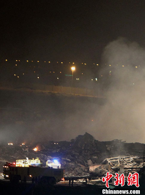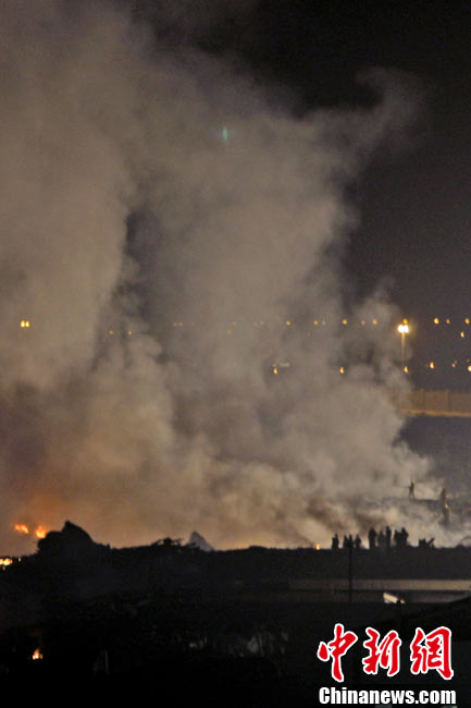 阿拉伯聯(lián)合酋長(zhǎng)國(guó)民航總局3日發(fā)表聲明說(shuō),美國(guó)聯(lián)合包裹服務(wù)公司(UPS)一架波音747-400貨機(jī)當(dāng)天晚上在迪拜墜毀,機(jī)上兩名飛行員喪生。圖為墜機(jī)現(xiàn)場(chǎng)。