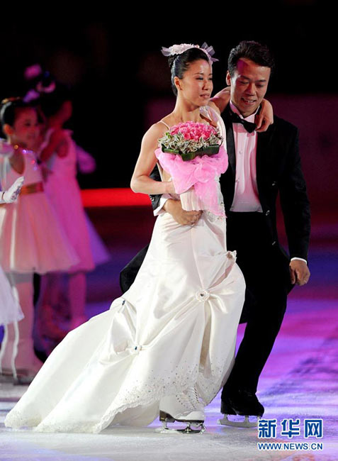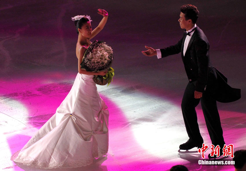 9月4日,申雪/趙宏博在首都體育館舉辦冰上婚典,并邀請普魯申科、亞古丁、約翰尼·威爾、淺田真央、羅切特等世界花滑巨星,聯(lián)袂世界著名編舞大師瑞內(nèi)·羅卡、歌星張靚穎、小提琴家呂思清等,為中國觀眾奉獻(xiàn)上一場賞心悅目、浪漫唯美的視聽盛宴。