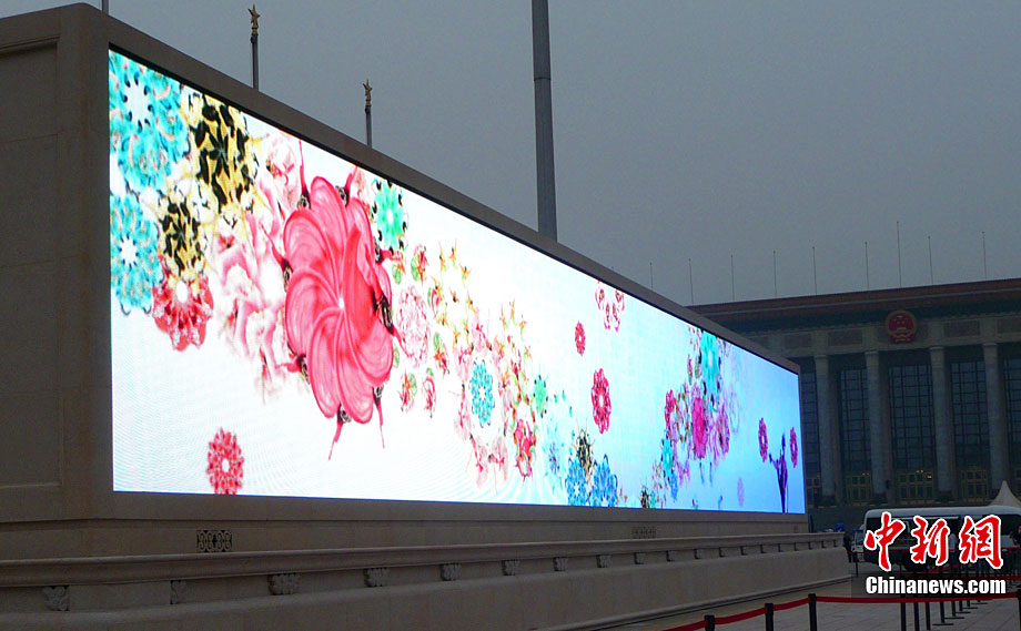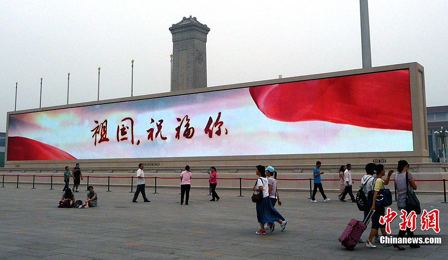 9月6日傍晚,北京天安門廣場(chǎng)人民英雄紀(jì)念碑北側(cè),兩塊新近亮相大理石基座的LED巨屏開始調(diào)試,巨屏將以新穎靚麗的視頻畫面迎接國(guó)慶節(jié)的到來。據(jù)悉,原本為臨時(shí)設(shè)施的這兩塊國(guó)內(nèi)最大廣場(chǎng)顯示屏,現(xiàn)改造為固定設(shè)施,成為天安門廣場(chǎng)的重要景觀,此次更換新屏后,像素間距將從16毫米壓縮至12毫米,畫面更加清晰逼真。玉龍 攝 圖片來源:cnsphoto