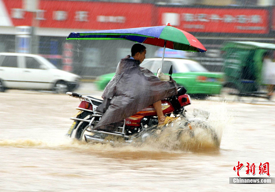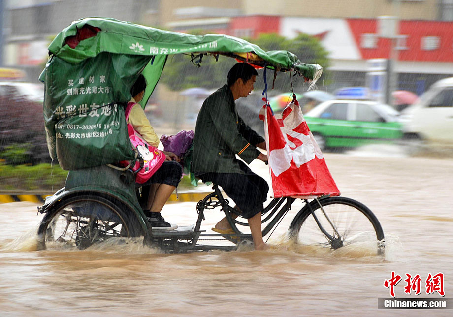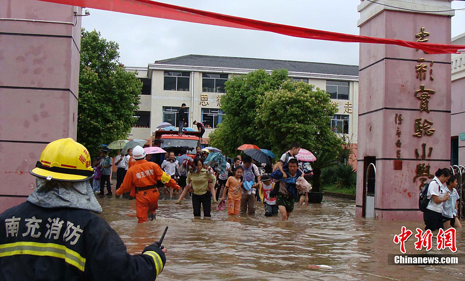 9月9日,四川省南充市突降暴雨,造成該市的高坪、嘉陵、順慶等主城區(qū)部分低洼地帶積水嚴重。高坪區(qū)第八小學、第六小學,嘉陵區(qū)光彩實驗小學被洪水圍困,南充消防官兵緊急出動,及時將被洪水圍困900多名小學生轉(zhuǎn)移至安全地帶。圖為消防、老師正在轉(zhuǎn)移受困學生。中新社發(fā) 南消萱 攝