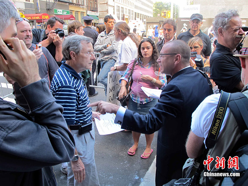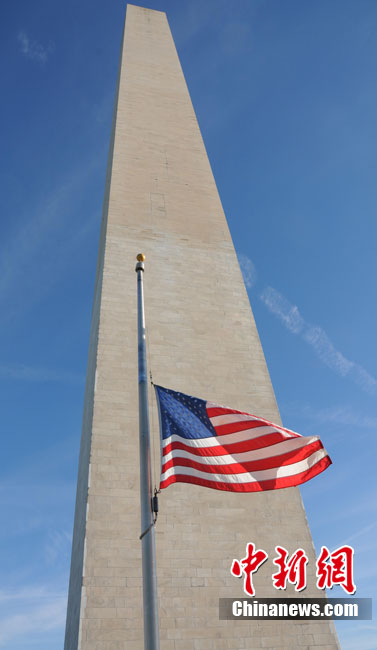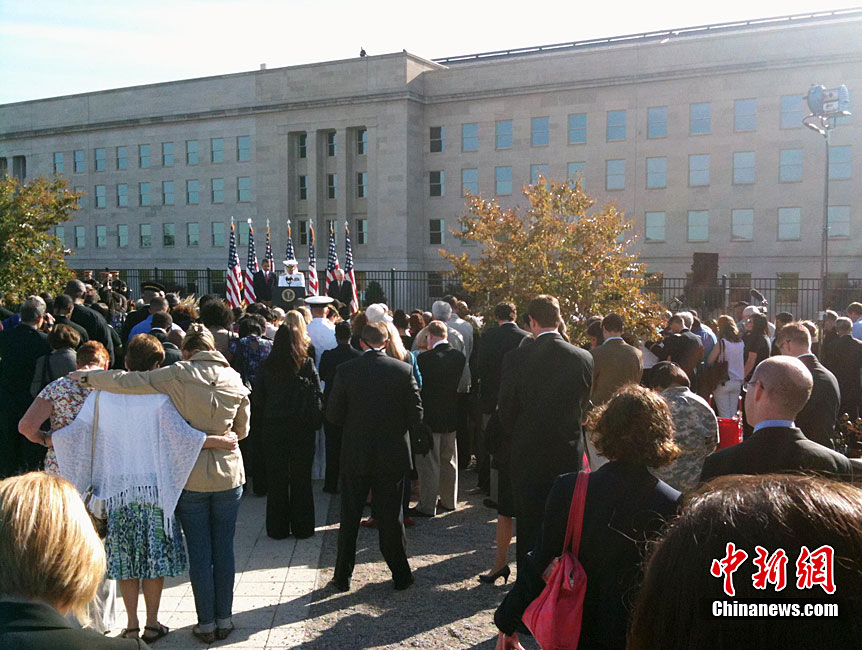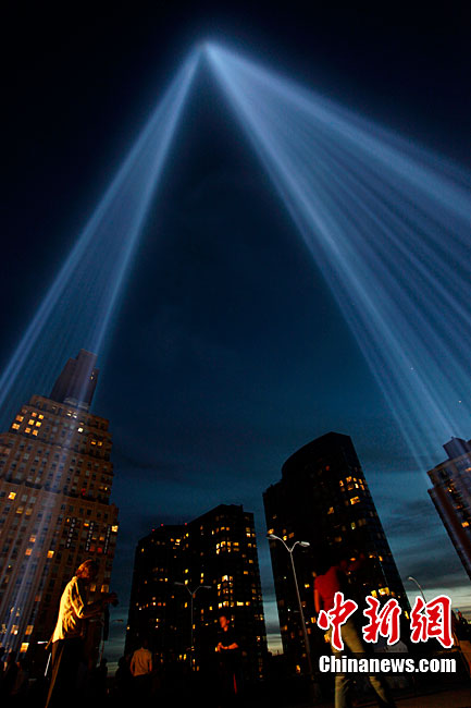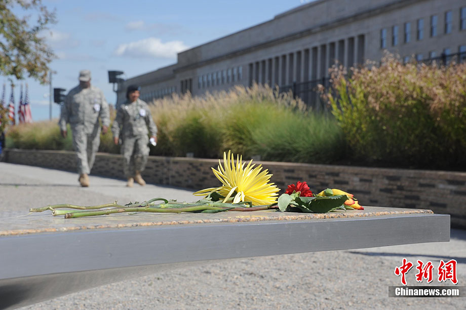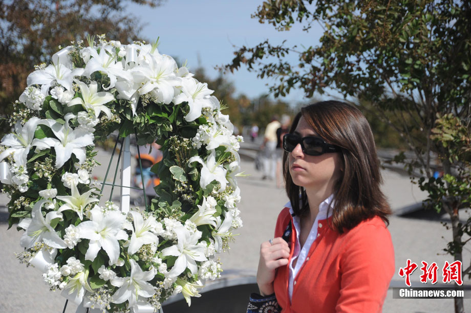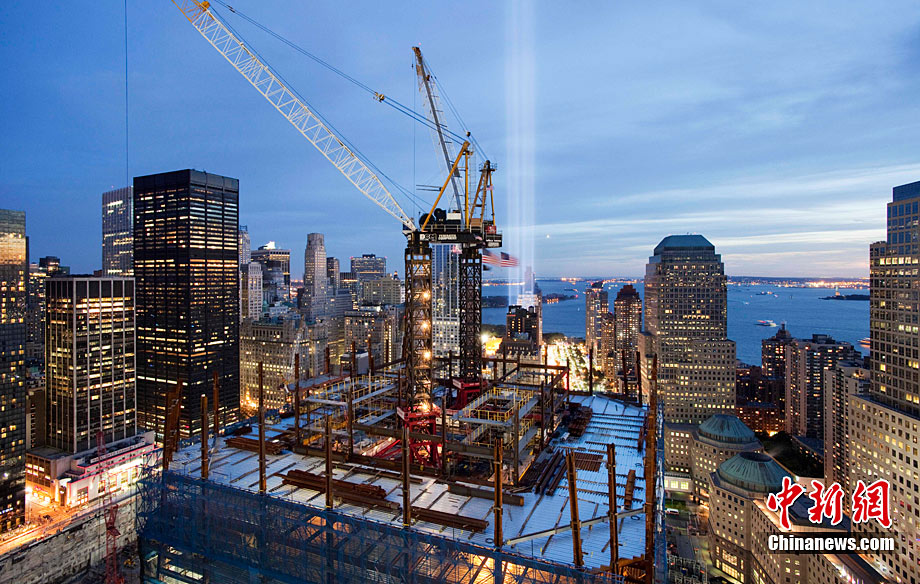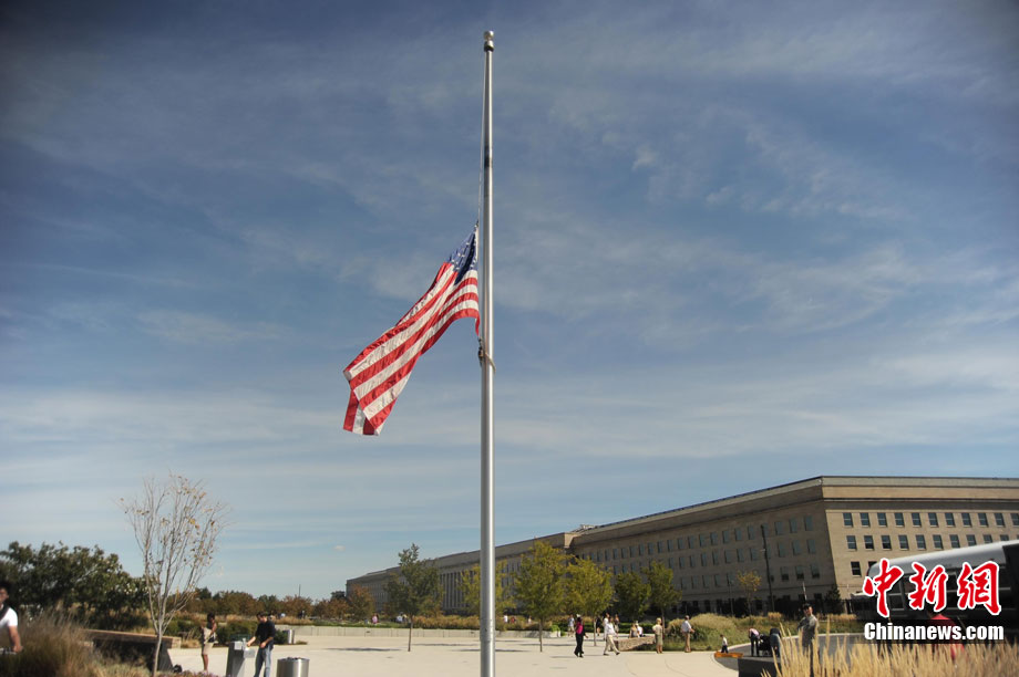 紐約世貿(mào)遺址當(dāng)?shù)貢r間9月11日上午舉行“9·11”事件9周年紀(jì)念活動,一面“9·11”事件中殘留下來的美國國旗在活動中展示。中新社記者 孫宇挺 攝