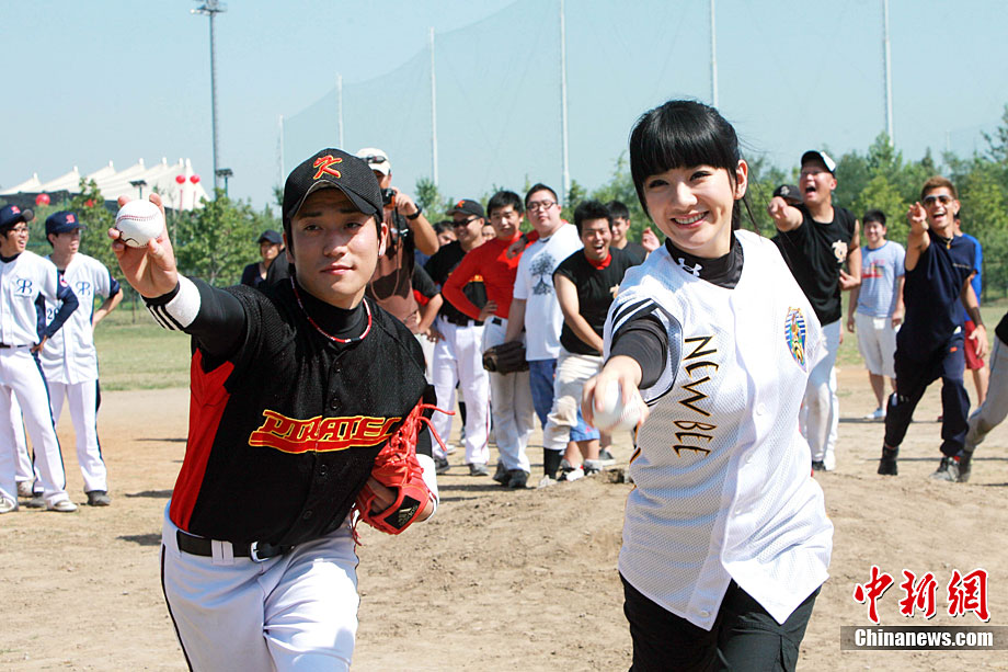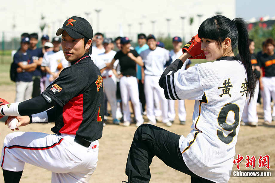 9月12日,全民棒壘聯(lián)盟PBSL秋季聯(lián)賽在北京開幕。黃奕作為開球嘉賓出席。在中日韓精英隊隊員們的指導(dǎo)下,黃奕現(xiàn)場打起棒球有模有樣。2010全民棒壘聯(lián)盟PBSL得到了在京的廣大中、日、韓、美等國棒壘球愛好者的踴躍支持,秋季聯(lián)賽將有超過30支泛北京區(qū)域(北京、河北以及天津)球隊參加。中新社記者 李學(xué)仕 攝