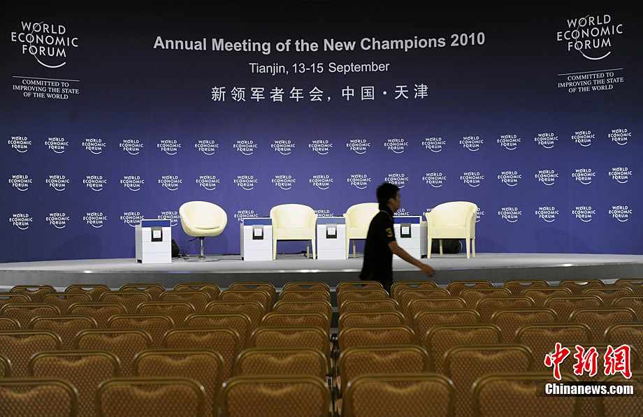 9月12日,2010夏季達(dá)沃斯各項(xiàng)籌備就緒,靜待明日開幕。近90個國家的超過1500名代表云集天津,將圍繞“推動可持續(xù)增長”這一主題展示各自真知灼見。中新社記者 劉震 攝