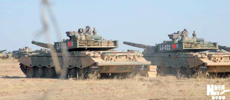 參加“和平使命-2010”上合組織聯(lián)合反恐軍事演習(xí)的中方參演裝備停放在哈薩克斯坦馬特布拉克訓(xùn)練場野戰(zhàn)兵營。圖為99式坦克。孫彥新 攝 圖片來源:新華網(wǎng)