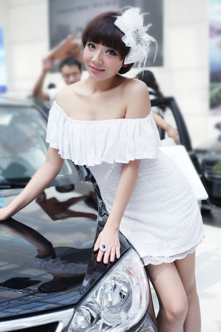 近日,魯能足球?qū)氊愴n媛媛清新亮相一車展活動,熱辣短裙盡顯青春活力。