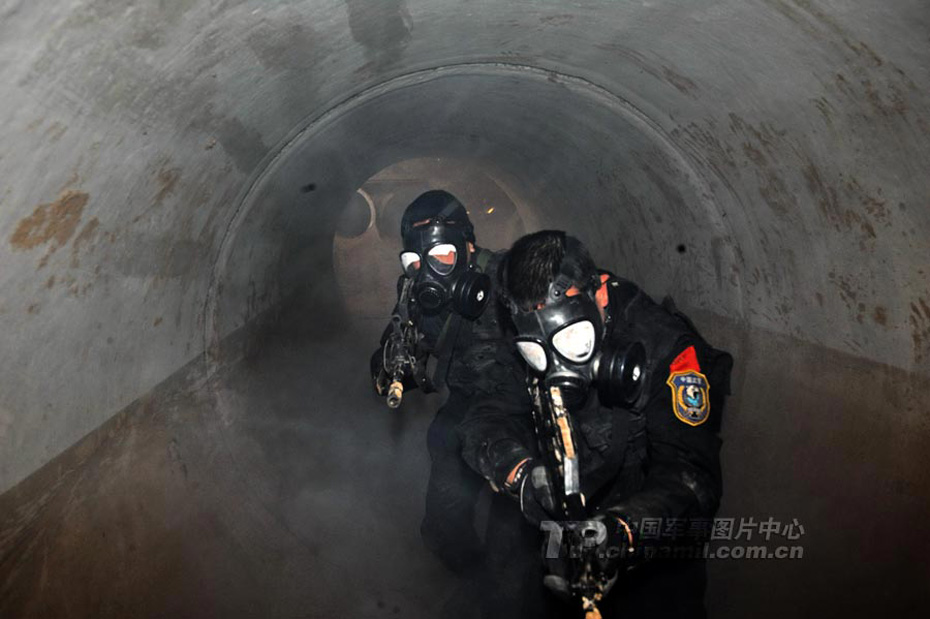 在有毒的地下管道中進(jìn)行搜索解救人質(zhì)。馮凱旋 攝