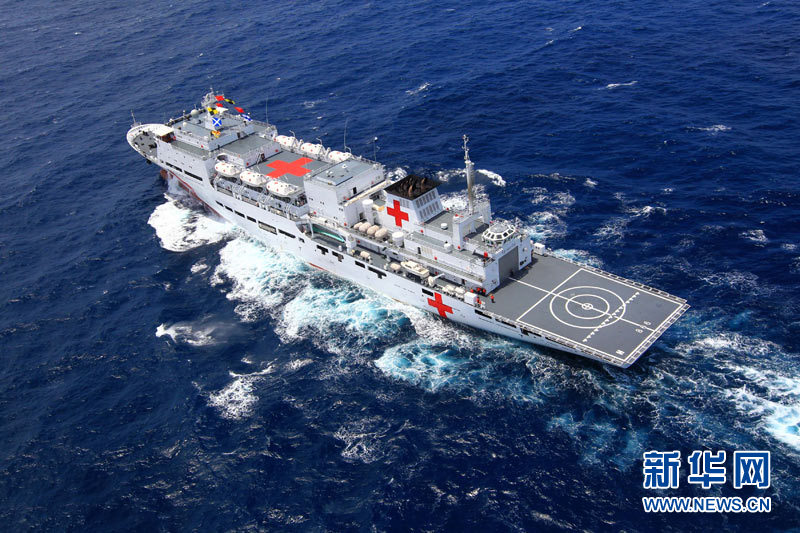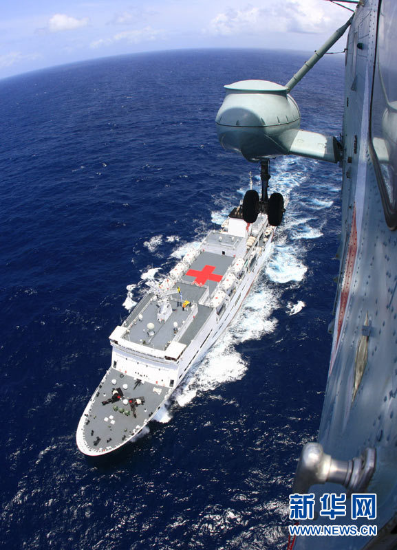 執(zhí)行“和諧使命—2010”任務(wù)的中國“和平方舟”號醫(yī)院船安全航行5300余海里后,于15日駛抵亞丁灣。2天后,醫(yī)院船將與正在亞丁灣海域執(zhí)行護(hù)航任務(wù)的中國海軍第六批艦艇編隊會合,并為護(hù)航官兵展開全方位的醫(yī)療服務(wù)。“和平方舟”號醫(yī)院船8月31日從中國舟山啟航,前往亞丁灣海域及吉布提、肯尼亞、坦桑尼亞、塞舌爾、孟加拉國等亞非五國執(zhí)行“和諧使命—2010”任務(wù)。查春明 攝 (圖片來源:新華網(wǎng))