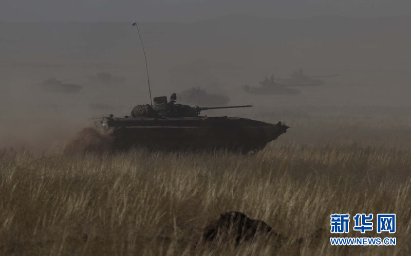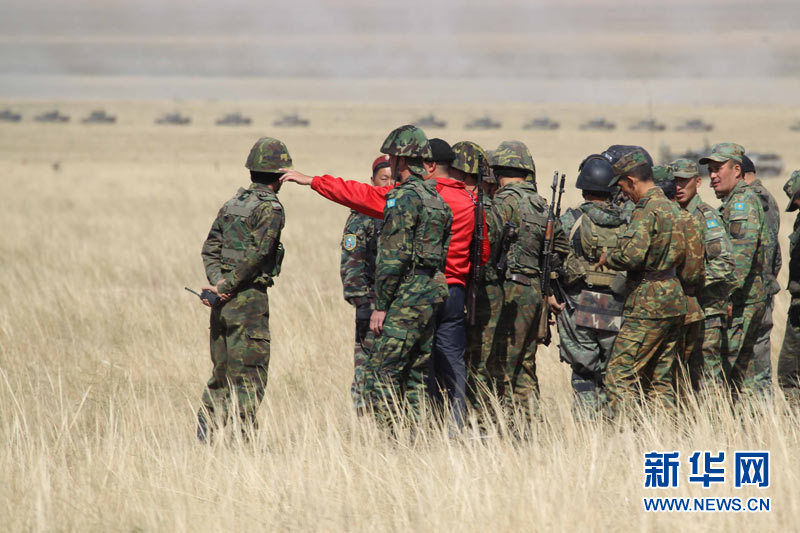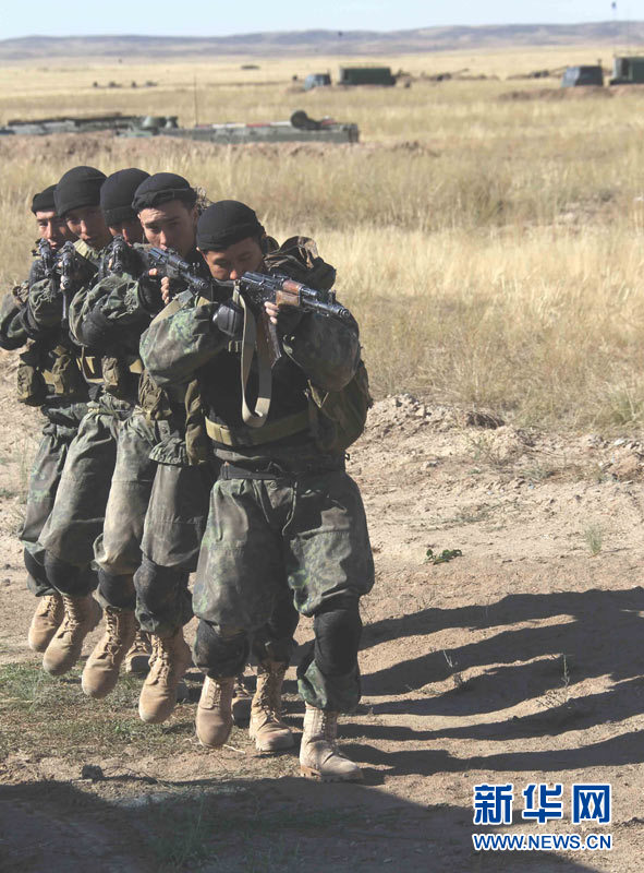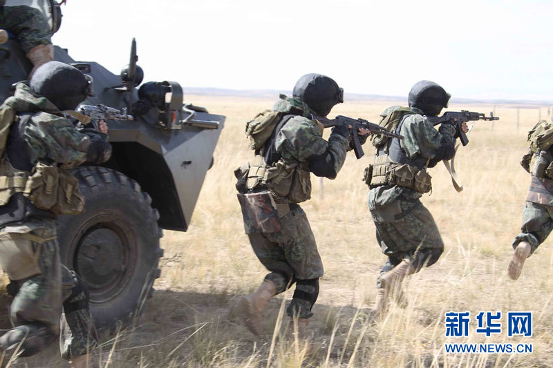 9月15日,參加上海合作組織成員國武裝力量聯(lián)合反恐軍事演習的哈薩克斯坦、中國、吉爾吉斯斯坦、俄羅斯、塔吉克斯坦五國參演部隊成功舉行第二次實兵合練。王建民 攝 圖片來源:新華網(wǎng)