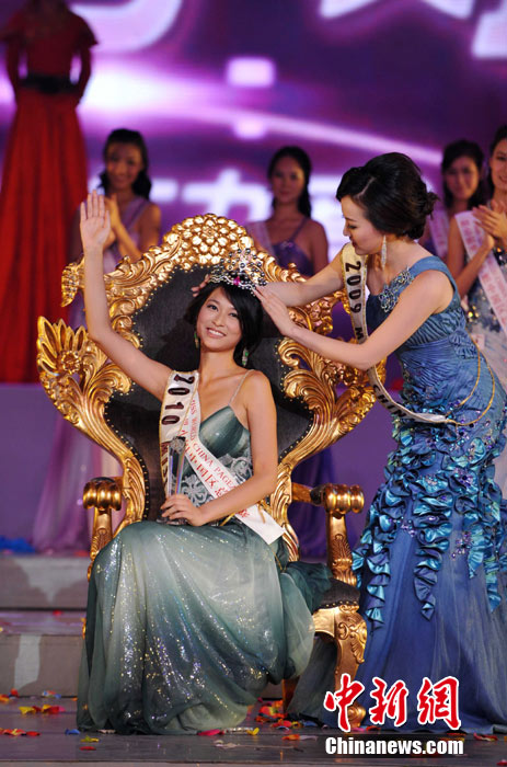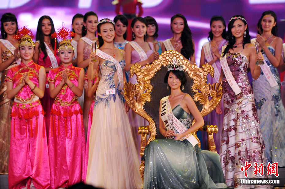 9月17日晚,參加第60屆世界小姐中國區(qū)總決賽的32位佳麗在深圳東部華僑城華麗上演,2號參賽佳麗唐瀟(中)、11號佳麗葛譯鴻(左)、21號佳麗許繼丹(右)分別奪得大賽冠、亞、季軍。中新社記者 陳文 攝