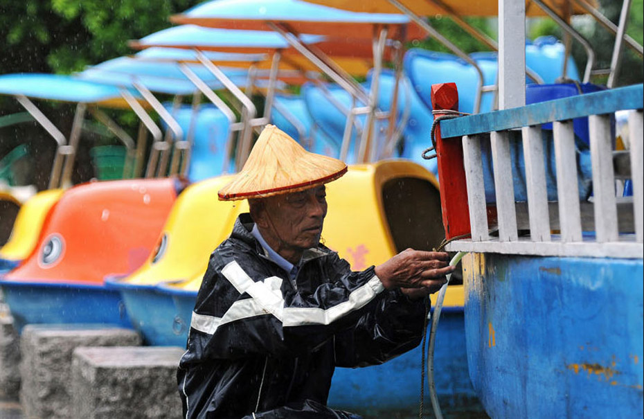 9月19日上午,臺北市民冒雨外出。當(dāng)日上午8時40分,超強(qiáng)臺風(fēng)“凡亞比”從臺灣花蓮縣豐濱鄉(xiāng)登陸,目前暴風(fēng)圈已籠罩臺灣各地,且風(fēng)雨在持續(xù)增強(qiáng)中。圖片來源:新華網(wǎng) 吳景騰 攝