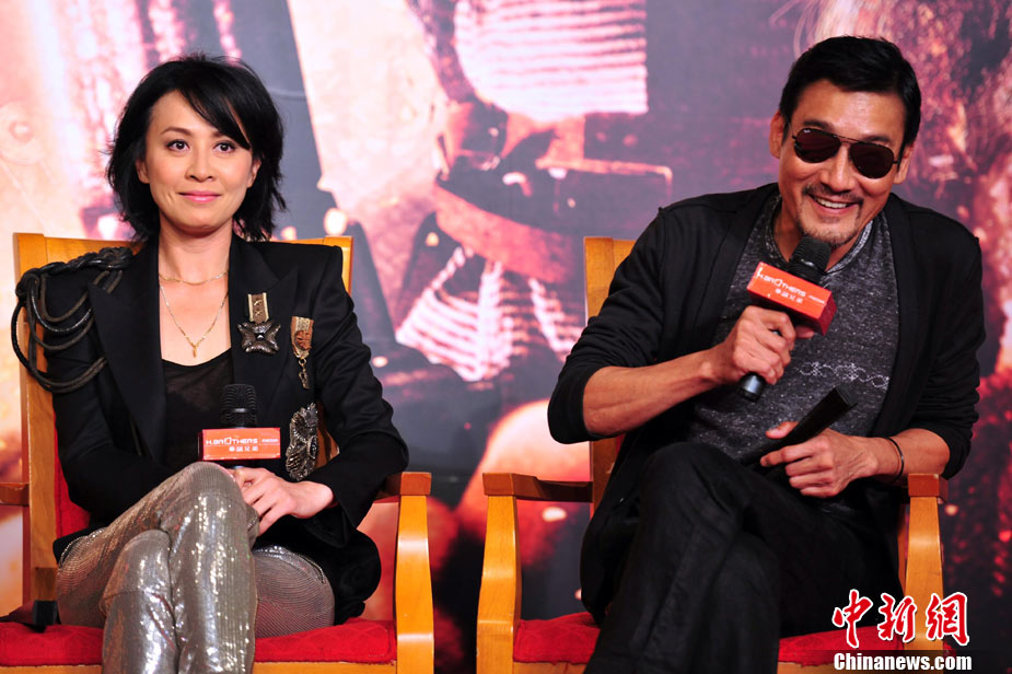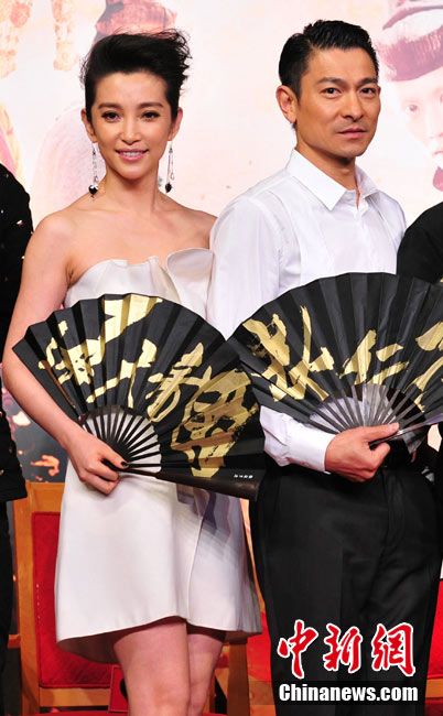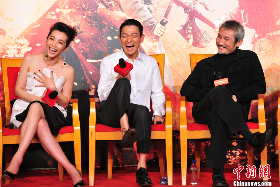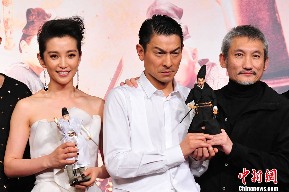 9月19日,由徐克導演、陳國富監(jiān)制、洪金寶擔任武術指導的華誼兄弟大片革命之作《狄仁杰之通天帝國》在京舉行亞洲首映發(fā)布會。導演徐克攜主演劉德華、李冰冰、劉嘉玲、梁家輝、鄧超全陣容亮相,這也是五大主演首次同臺宣傳。主演狄仁杰的劉德華在現(xiàn)場大開玩笑,多次引爆笑彈。該片將于9月29日上映。圖為劉德華扮起觀音姿勢。中新社記者 李學仕 攝