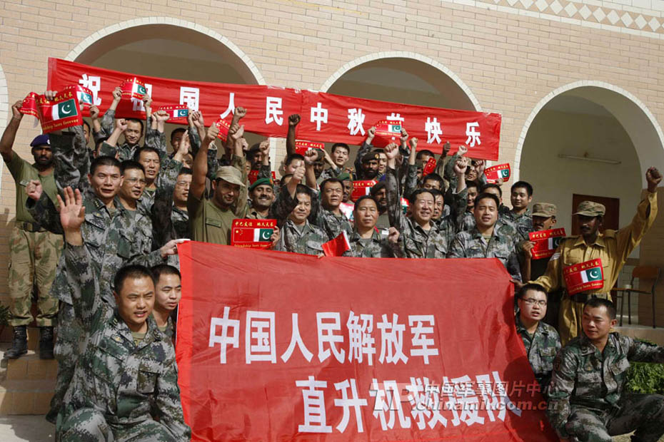 中國援巴直升機(jī)救援隊(duì)的隊(duì)員到達(dá)海德拉巴市巴方駐軍軍營后,積極主動(dòng)協(xié)調(diào)幫助駐地巴方軍人研究制定直升機(jī)運(yùn)送物資、搶救傷員等一系列事宜,連日來,通過雙方軍人的共同磋商已達(dá)成了救災(zāi)預(yù)案,雙方軍人在交往中增進(jìn)了友誼,為慶祝中國傳統(tǒng)的中秋佳節(jié),巴方官兵來到中方援巴人員駐地,開展一系列文化慶;顒(dòng)。