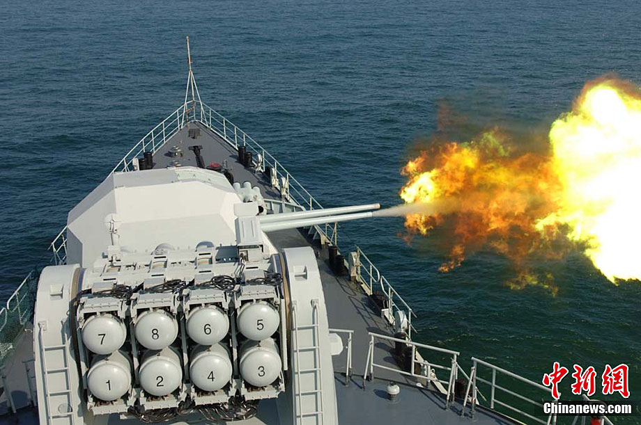 9月23日,中澳兩國(guó)海軍在中國(guó)黃海海域舉行聯(lián)合實(shí)彈軍事演練,此次演練的主要科目有編隊(duì)通信、海上聯(lián)合搜救、編隊(duì)運(yùn)動(dòng)、火炮對(duì)海射擊等內(nèi)容。圖為中國(guó)軍艦火炮對(duì)海上目標(biāo)實(shí)彈射擊。中新社發(fā) 王松岐 攝