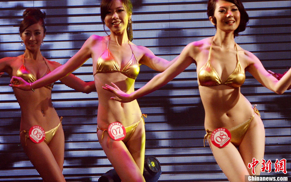 9月24日晚,2010亞洲小姐競(jìng)選中國(guó)內(nèi)地網(wǎng)絡(luò)賽區(qū)總決賽在北京舉行,15位佳麗“火辣、性感”登場(chǎng)角逐,經(jīng)過(guò)泳裝、云錦晚裝秀、才藝展示以及現(xiàn)場(chǎng)知識(shí)問(wèn)答等環(huán)節(jié),最后選自西南網(wǎng)絡(luò)賽區(qū)的5號(hào)王欣獲得冠軍、華北網(wǎng)絡(luò)賽區(qū)3號(hào)劉曉智獲得亞軍、華北網(wǎng)絡(luò)賽區(qū)10號(hào)何婭萌獲得季軍。圖為參賽佳麗展示風(fēng)采. 中新社發(fā) 錢興強(qiáng) 攝