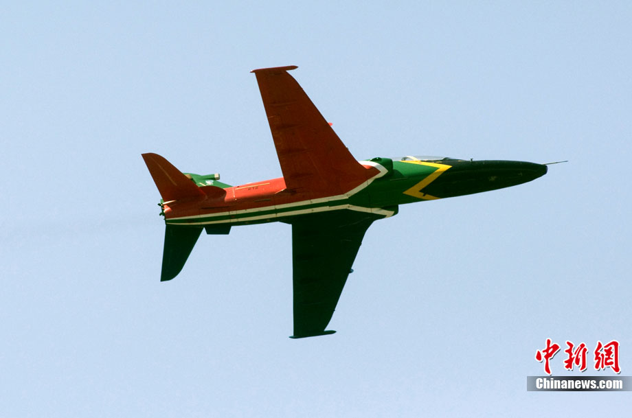 當(dāng)?shù)貢r(shí)間9月24日,南非開普敦Ysterplaat空軍基地舉行了非洲最大的航空裝備和武器展覽會(huì)。來自世界各地的軍火商攜帶軍事裝備參展。圖為南非空軍武裝直升機(jī)在進(jìn)行飛行表演。