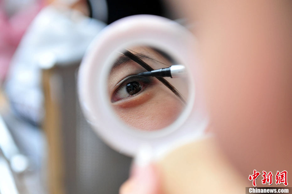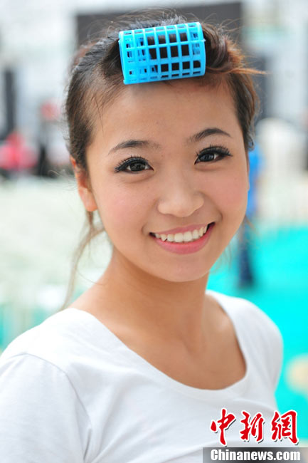 9月25日,40名佳麗選手云集四川省劍閣縣體育館,為即將到來的2010中華旅游小姐大賽中國區(qū)總決賽晚會進行彩排。為了一個小時的時尚秀,選手們需要參加兩天共10幾個小時的高強度彩排,大部分的時間她們在“模指”的指導下站立、走臺、或者是緊張的換衣。然而,猶如T臺上的絢麗一樣,她們的后臺同樣精彩。中新社記者 李學仕 攝