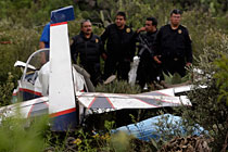 9月25日,墨西哥普埃布拉州的特卡馬查爾科,警察清理墜機(jī)現(xiàn)場(chǎng)。當(dāng)天,墨西哥一架小型飛機(jī)在特卡馬查爾科墜毀,飛機(jī)上的兩名商人遇難。