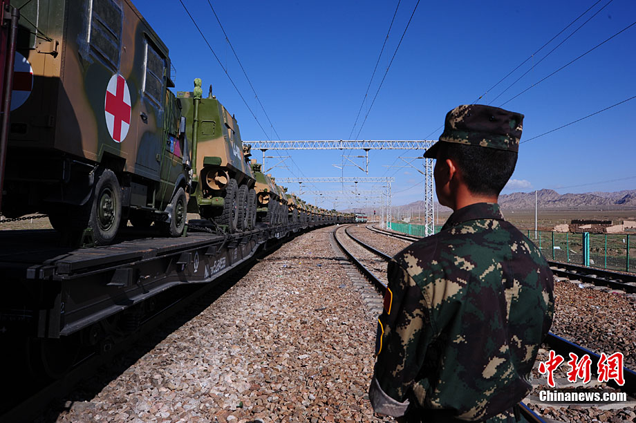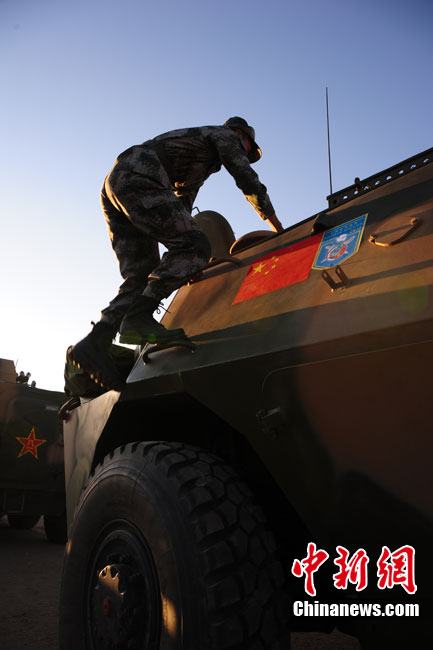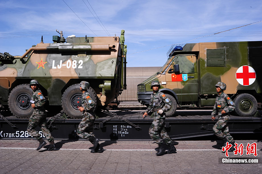 9月10日至9月25日,為期16天的“和平使命-2010”聯(lián)合反恐軍事演習(xí)在哈薩克斯坦舉行。圖為中方參演部隊(duì)在做出發(fā)前的準(zhǔn)備。張斌 攝