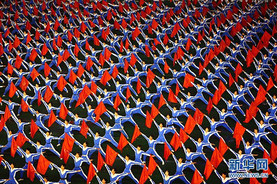 8月14日,朝鮮青少年在平壤“五一體育場(chǎng)”表演大型團(tuán)體操和文藝表演《阿里郎》。《阿里郎》由朝鮮10萬(wàn)名青少年和專業(yè)藝術(shù)工作者參與演出,規(guī)模之大堪稱世界之最。2007年8月,《阿里郎》被載入《吉尼斯世界紀(jì)錄》。朝鮮勞動(dòng)黨代表會(huì)議將于9月28日在平壤舉行。劉宇攝 圖片來(lái)源:新華網(wǎng)