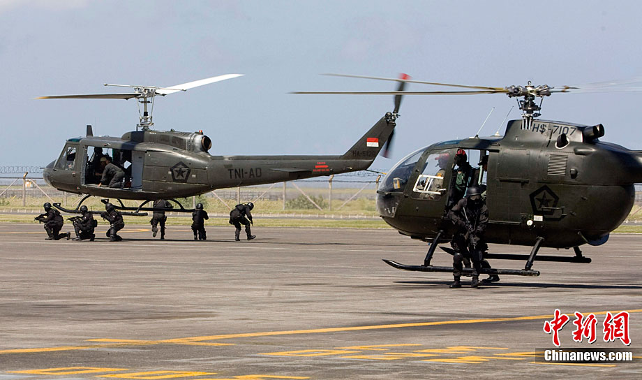 當?shù)貢r間9月28日,印尼特種部隊和澳大利亞反恐部隊在印度尼西亞巴厘島國際機場舉行了聯(lián)合反恐演習。