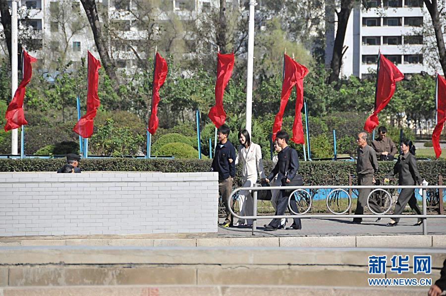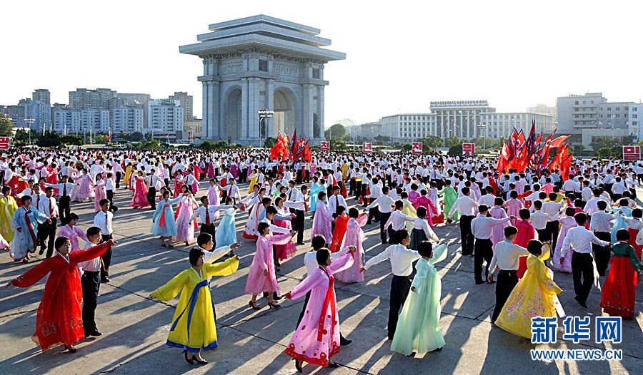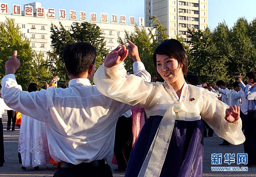 9月28日,朝鮮青年學生在首都平壤舉行舞蹈集會,慶祝朝鮮勞動黨代表會議當天推舉金正日為朝鮮勞動黨總書記。圖片來源:新華網