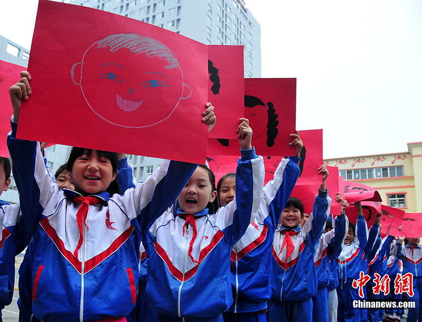 9月27日,一場以“我驕傲,我是中國人”為主題的國慶61周年誦讀繪畫賽活動(dòng)在蘇州市一所小學(xué)校舉行,該校百余名一、二年級學(xué)生以集體誦讀和繪畫展示等形式,表達(dá)對偉大的祖國贊美與衷心祝福。王建中 攝 圖片來源:cnsphoto