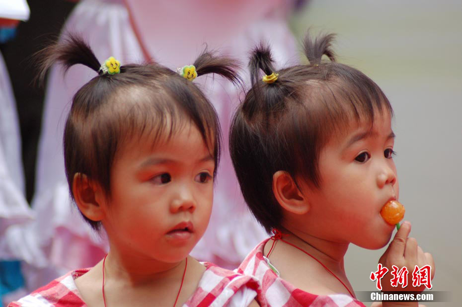10月1日,國慶長假第一日,70多對雙胞胎、三胞胎歡聚廣西南寧市人民公園,參加“南寧首屆雙胞胎歡樂節(jié)”,比拼相似度與默契程度。參加活動的雙胞胎有長得酷似李宇春、周迅、大小S等明星,引來眾多好奇目光。中新社記者 劉萬強(qiáng) 攝