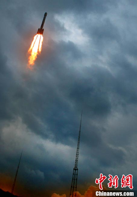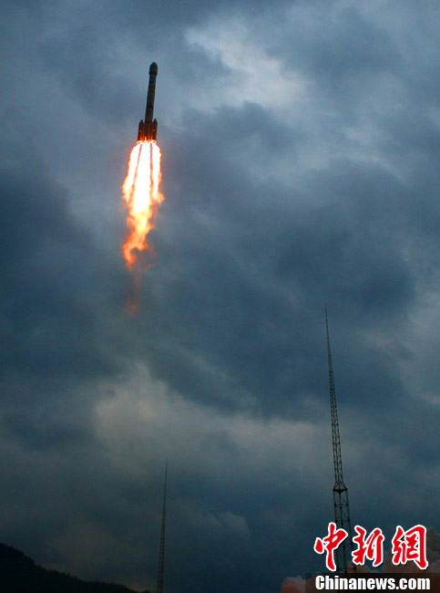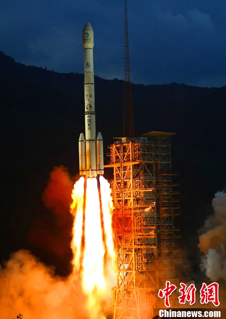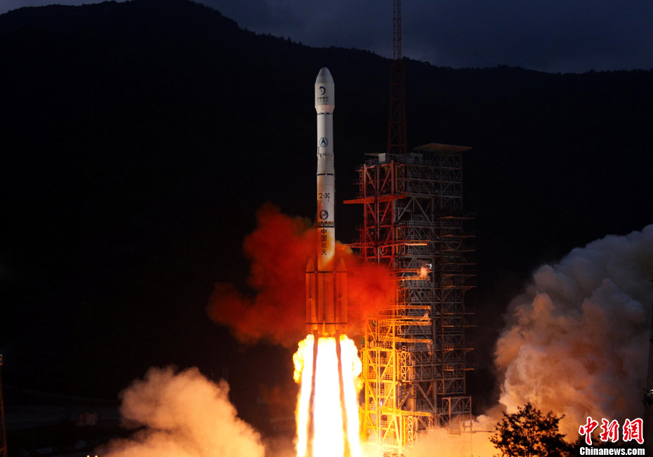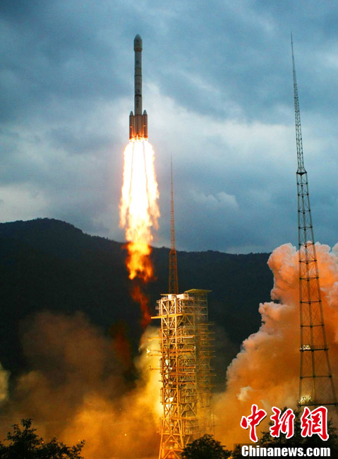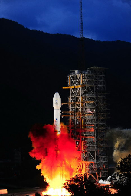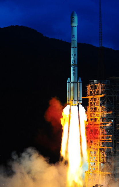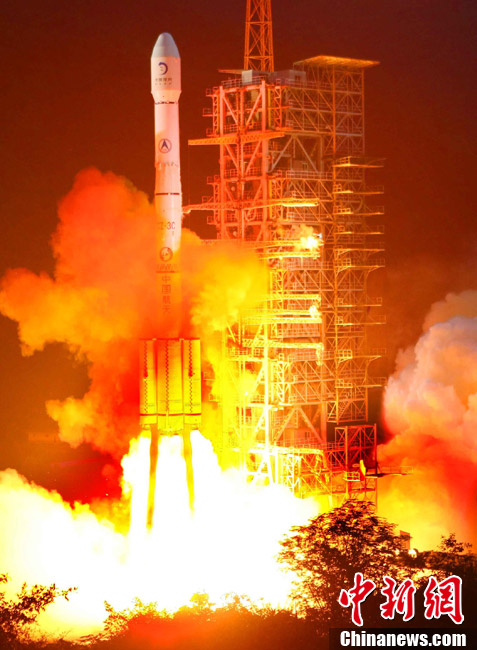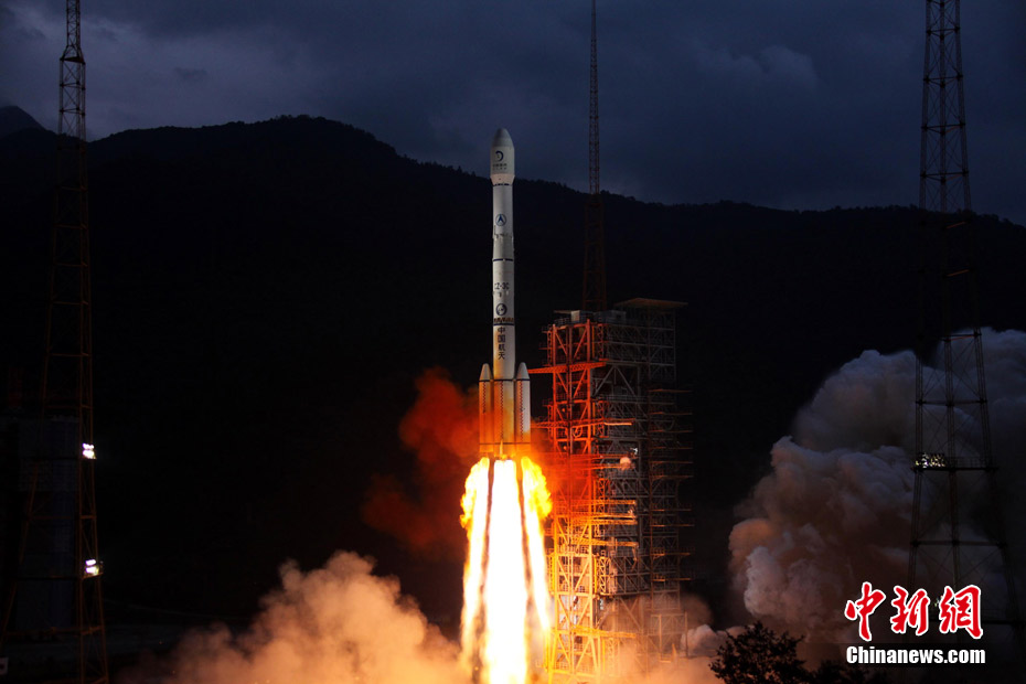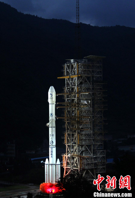 10月1日晚,中國第二顆繞月探測衛(wèi)星“嫦娥二號”在西昌衛(wèi)星發(fā)射中心發(fā)射成功。按照預(yù)定計劃,“嫦娥二號”將被送入近地點高度200公里、遠(yuǎn)地點高度約38萬公里的直接奔月軌道,然后奔月飛行約112小時。當(dāng)衛(wèi)星到達月球附近的特定位置時,實施近月制動及軌道調(diào)整,進入距月面100公里工作軌道。之后,衛(wèi)星擇機變軌,進入100公里×15公里繞月橢圓軌道,驗證軌道機動和飛行技術(shù),拍攝后續(xù)任務(wù)虹灣預(yù)選著陸區(qū)圖像,然后返回100公里圓軌道,并開展相關(guān)技術(shù)試驗和科學(xué)探測。中新社記者 宋吉河 攝