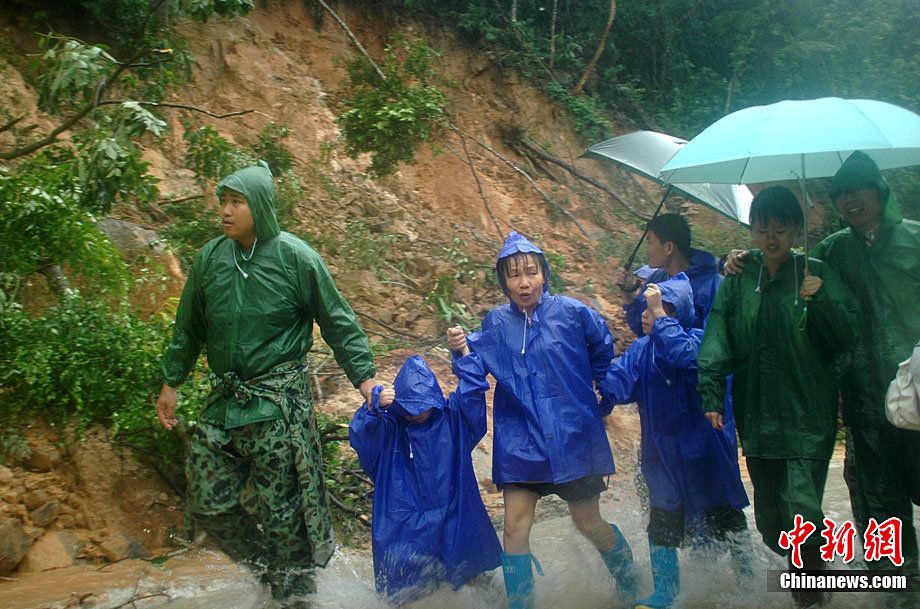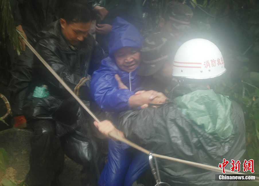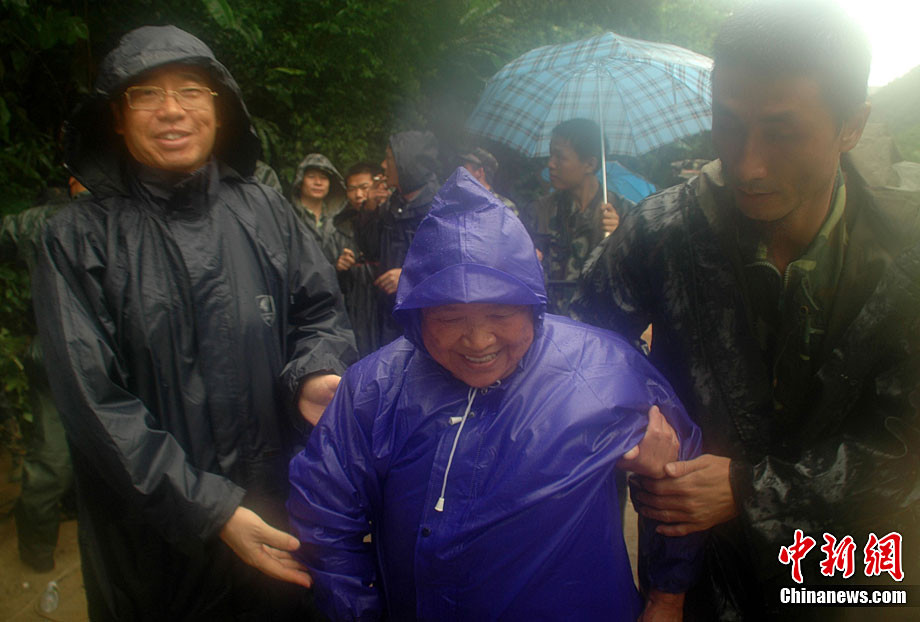10月4日15時(shí)許,經(jīng)過(guò)救援人員近48個(gè)小時(shí)的緊張救援,因山體滑坡被滯留在吊羅山中的125名游客已經(jīng)全部安全轉(zhuǎn)移下山。10月2日下午3時(shí),在海南陵水吊羅山林業(yè)局上山道路約3.5公里處,突發(fā)山體滑坡,海南省政府相關(guān)部門(mén)和陵水縣委縣政府全力組織人員實(shí)施救援。圖為今年已經(jīng)88歲的老人許環(huán)渠(音)在救援人員的陪護(hù)下轉(zhuǎn)移。中新社記者 尹海明 攝