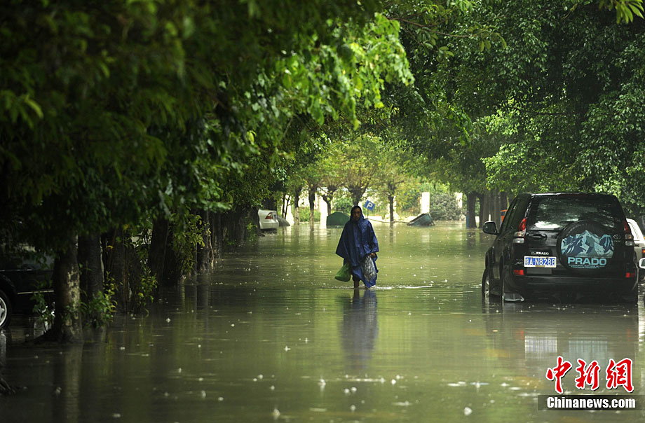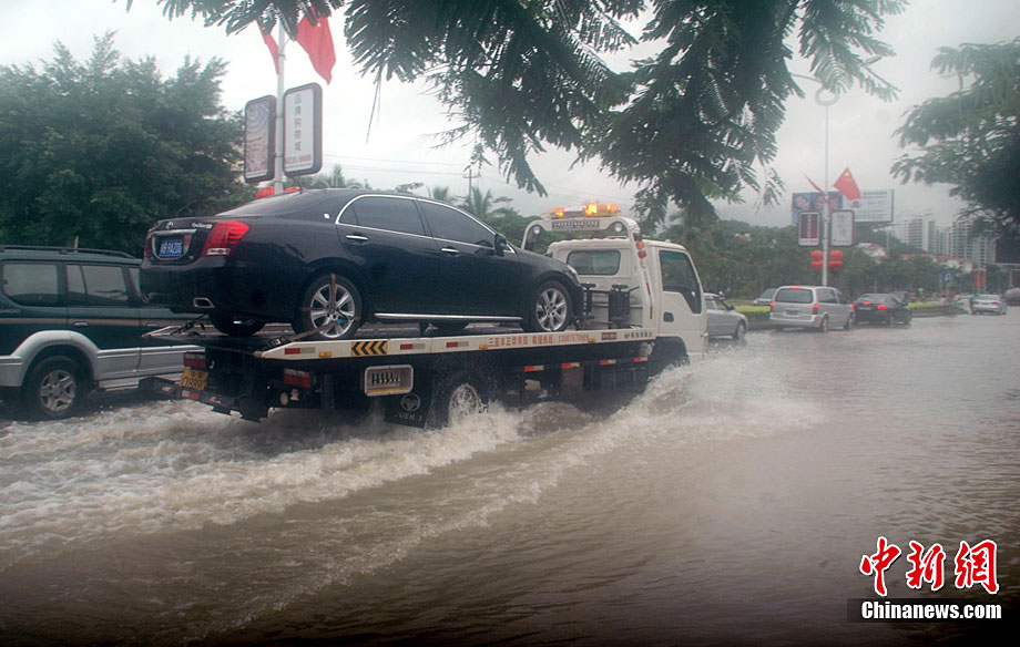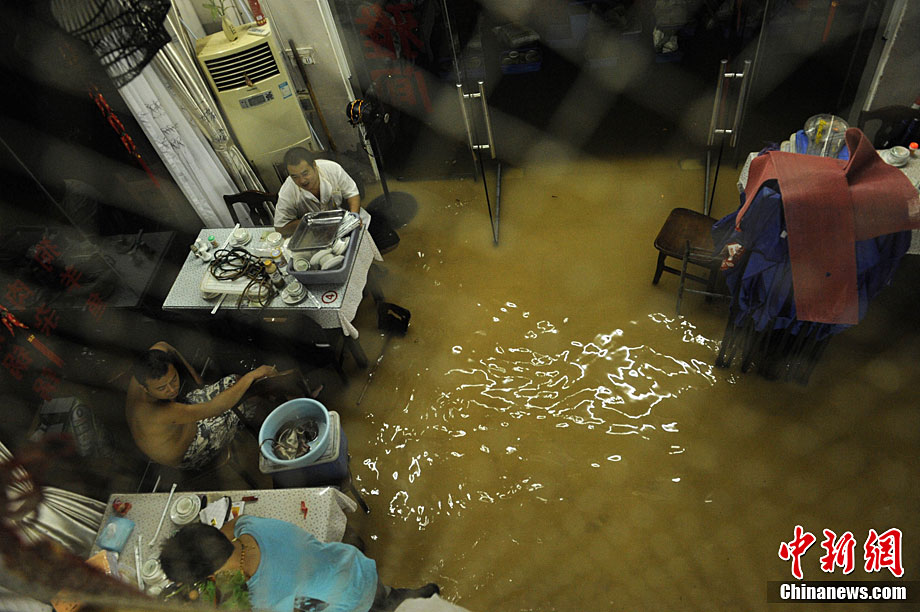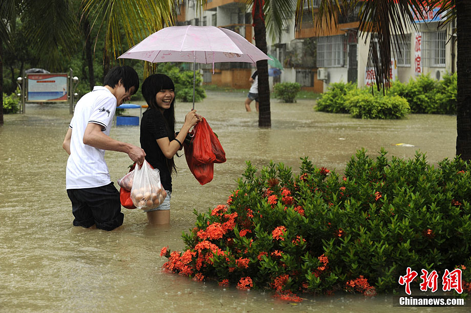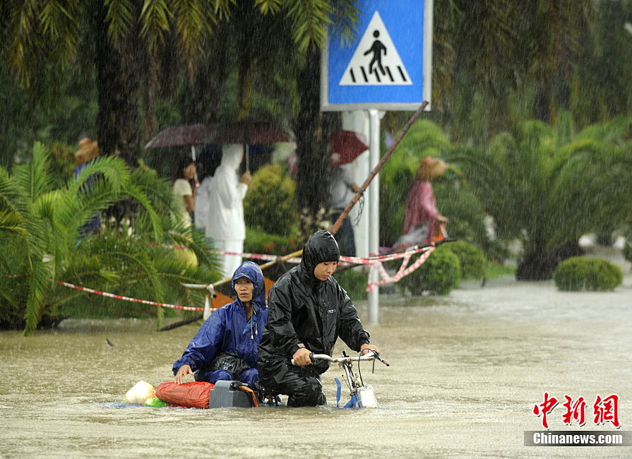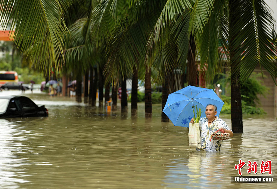 10月5日,持續(xù)五天的暴雨導(dǎo)致三亞多個(gè)小區(qū)嚴(yán)重積水。不少市民家中進(jìn)水,商戶紛紛歇業(yè)避雨。徐勤濤 攝 圖片來源:cnsphoto