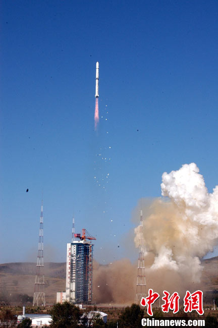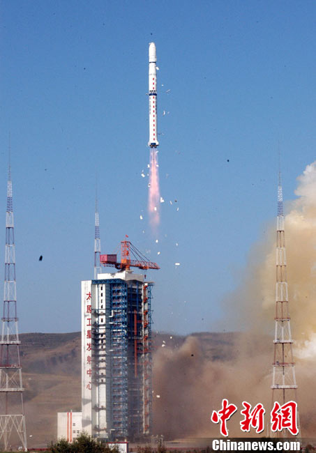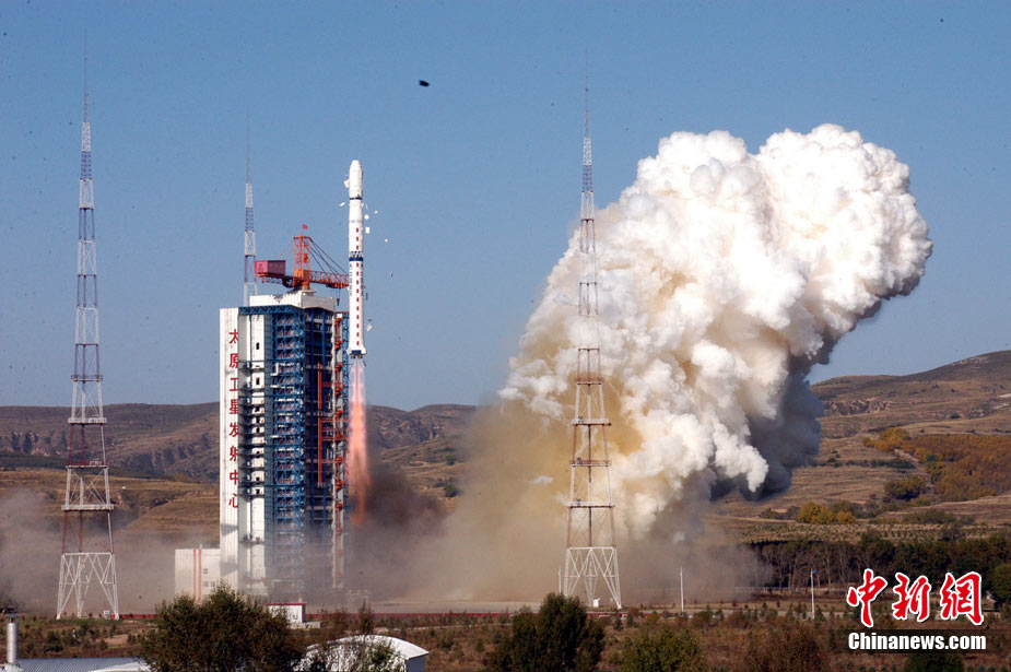 北京時間10月6日8時49分,中國在太原衛(wèi)星發(fā)射中心用“長征四號乙”運載火箭一箭雙星,成功將“實踐六號”04組兩顆空間環(huán)境探測衛(wèi)星送入太空。中新社發(fā) 尚春雅 攝