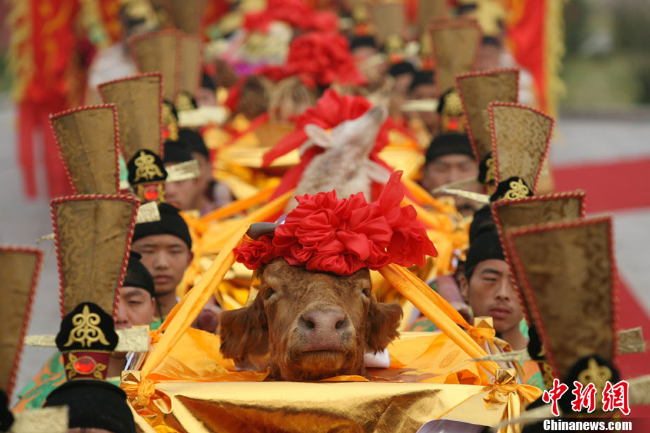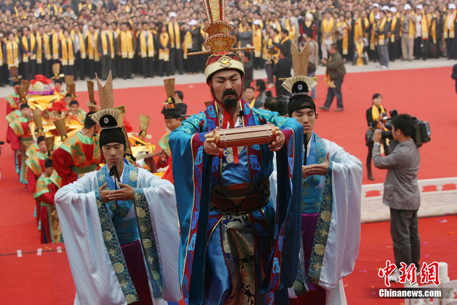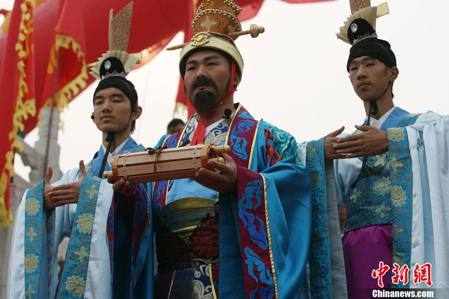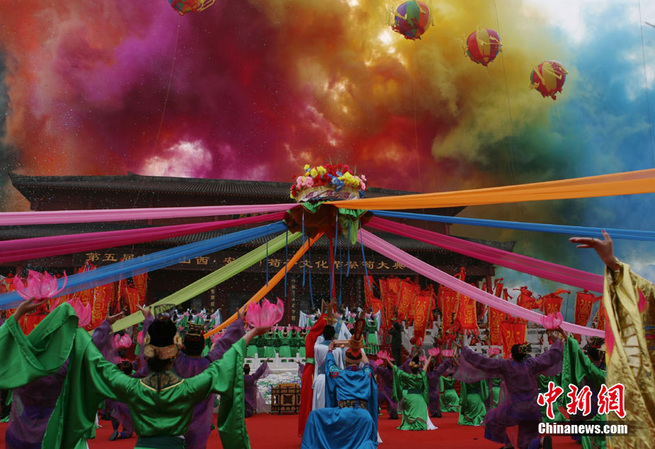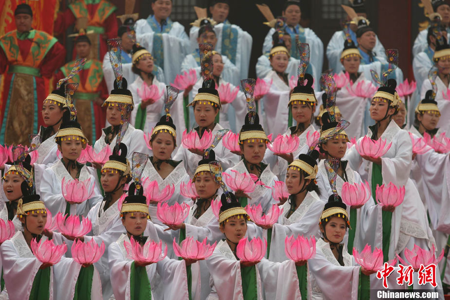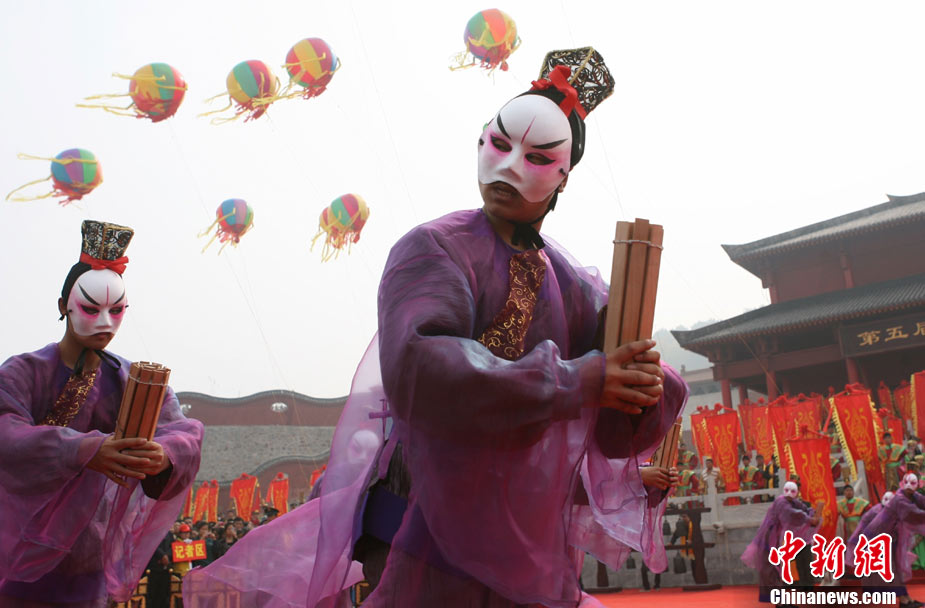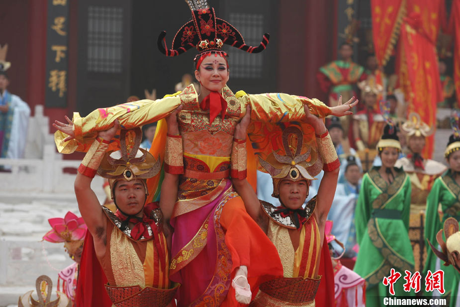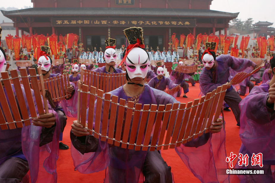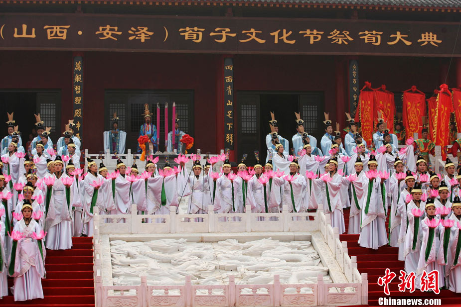 10月10日,演員在祭荀大典上表演戰(zhàn)國(guó)風(fēng)格的舞蹈。當(dāng)日,第五屆中國(guó)荀子文化節(jié)開幕式暨祭荀大典在荀子故里山西省安澤縣舉行。包括10國(guó)駐華大使在內(nèi)的數(shù)千名海內(nèi)外人士參加了此次大典。中新社發(fā) 蘇丹 攝