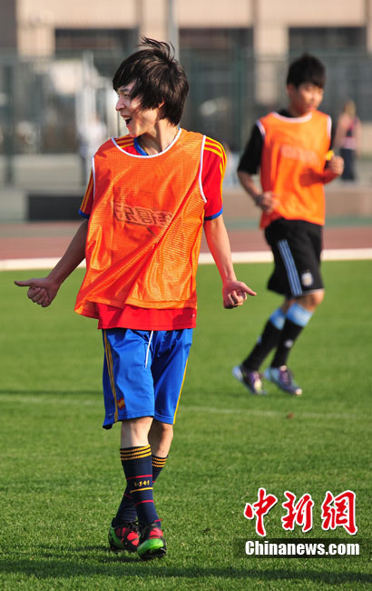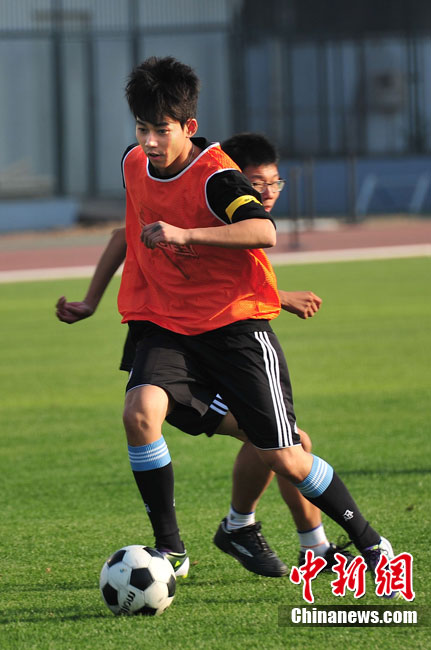 10月13日,“青春綻放”大學生音樂之旅大賽走進北京大學舉行宣傳活動。蘇醒、王嘯坤、王錚亮等潮流歌手組成明星足球隊,與北大學子們在綠茵場上切磋球技,揮灑青春熱情。據(jù)悉,“青春綻放”大學生音樂之旅大型音樂人才選拔活動已進入高校宣傳階段,將陸續(xù)走進清華大學,首都師范大學,中央民族大學等十多所高校,鼓勵更多的大學生參賽,展現(xiàn)青春自我。圖為蘇醒帶球突破。中新社記者 李學仕 攝