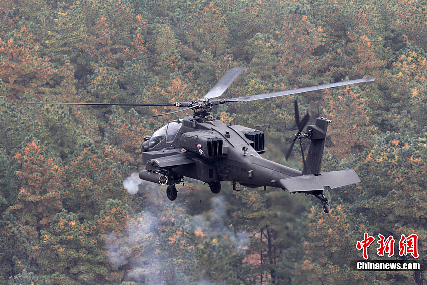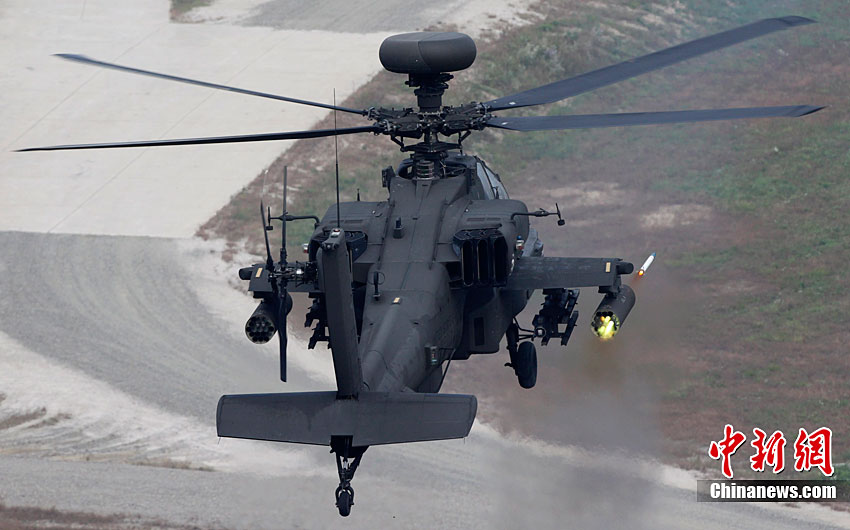 當(dāng)?shù)貢r(shí)間10月13日,韓國(guó)在釜山附近海域開(kāi)始為期兩天的防擴(kuò)散聯(lián)合演習(xí)。此次演習(xí)由韓國(guó)軍隊(duì)主導(dǎo),美國(guó)、日本等15個(gè)國(guó)家參加。其中,韓國(guó)、美國(guó)、日本、澳大利亞參與海上攔截演習(xí)。韓軍出動(dòng)兩艘韓國(guó)型驅(qū)逐艦、兩艘登陸艦等艦艇。美國(guó)宙斯盾驅(qū)逐艦、日本4000噸級(jí)驅(qū)逐艦、澳大利亞P-3C巡邏機(jī)等參演。圖為10月13日,美國(guó)AH-64武裝直升機(jī)在韓國(guó)抱川進(jìn)行防擴(kuò)散聯(lián)合演習(xí)中進(jìn)行射擊。
