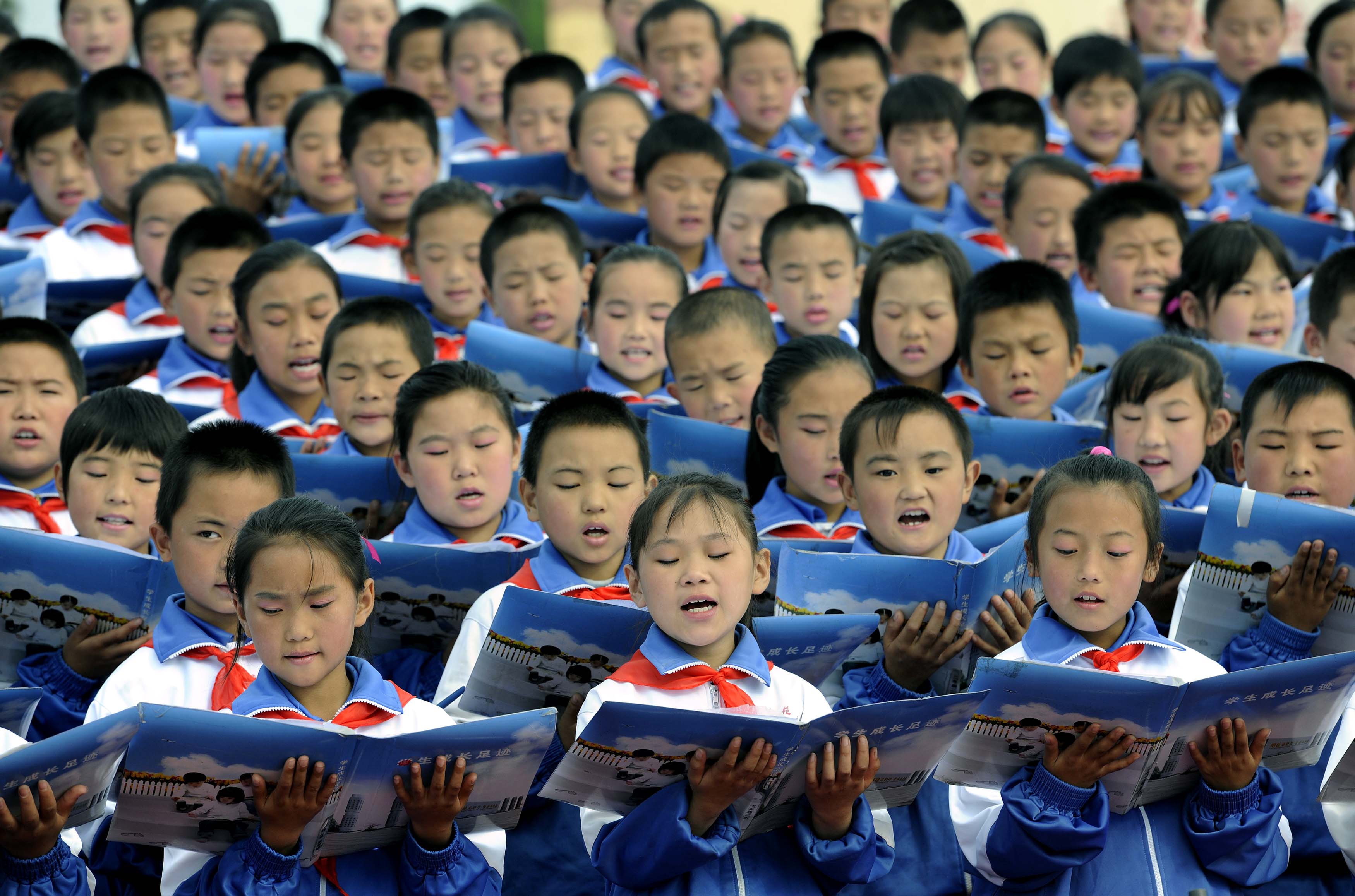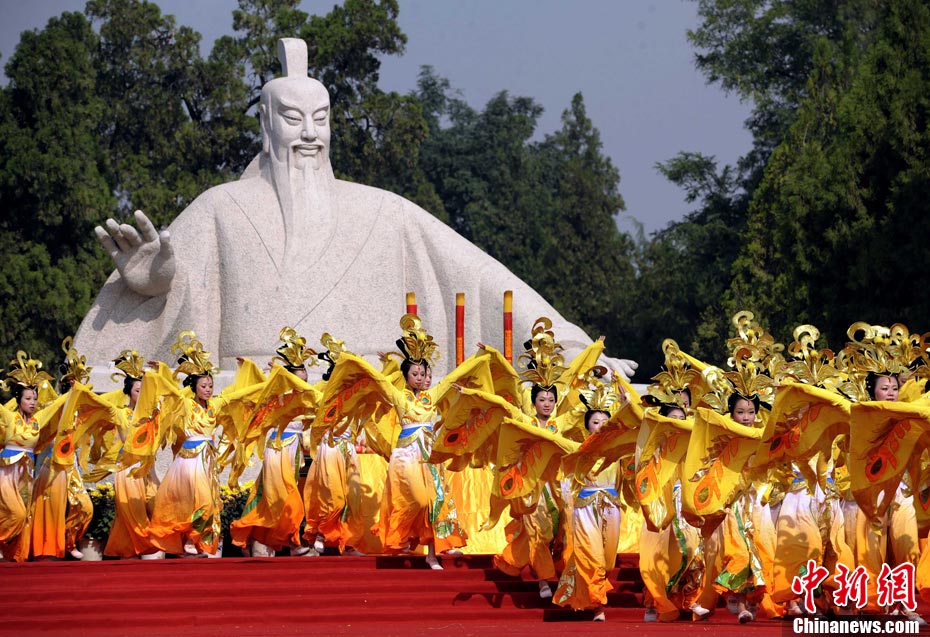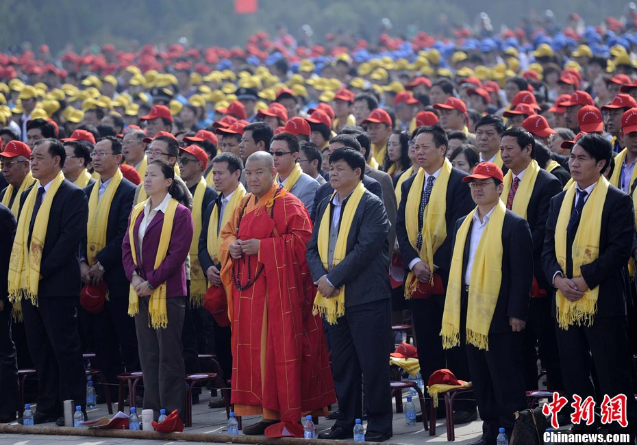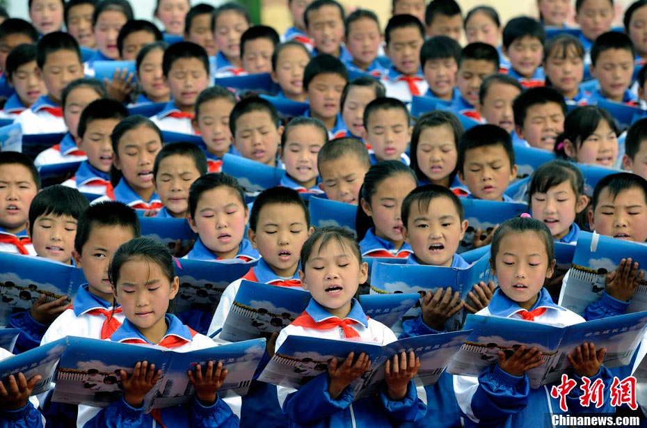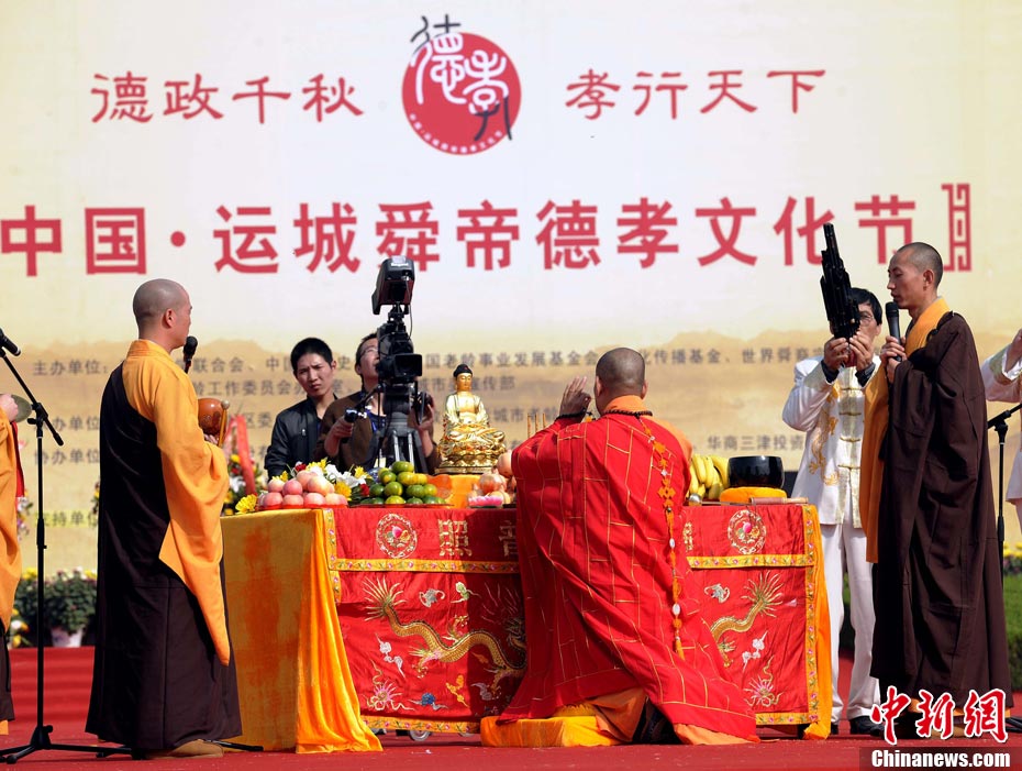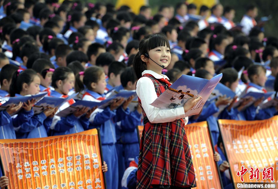 10月16日,運(yùn)城舜帝德孝文化節(jié)在山西省運(yùn)城市鹽湖區(qū)鳴條舜帝陵開(kāi)幕。舜帝以其獨(dú)特的歷史地位和杰出的歷史功績(jī),被后人尊崇為“百孝之首”、“道德之祖”和“文明之元”,本屆文化節(jié)主題也定義為“德政千秋、孝行天下”。圖為運(yùn)城千名小學(xué)生齊誦《弟子規(guī)》。中新社發(fā) 劉震 攝
