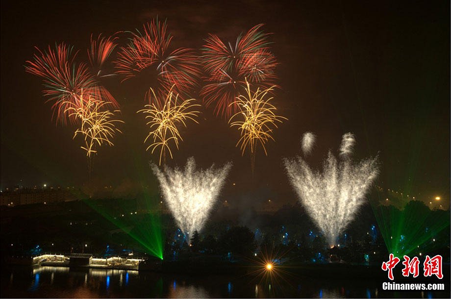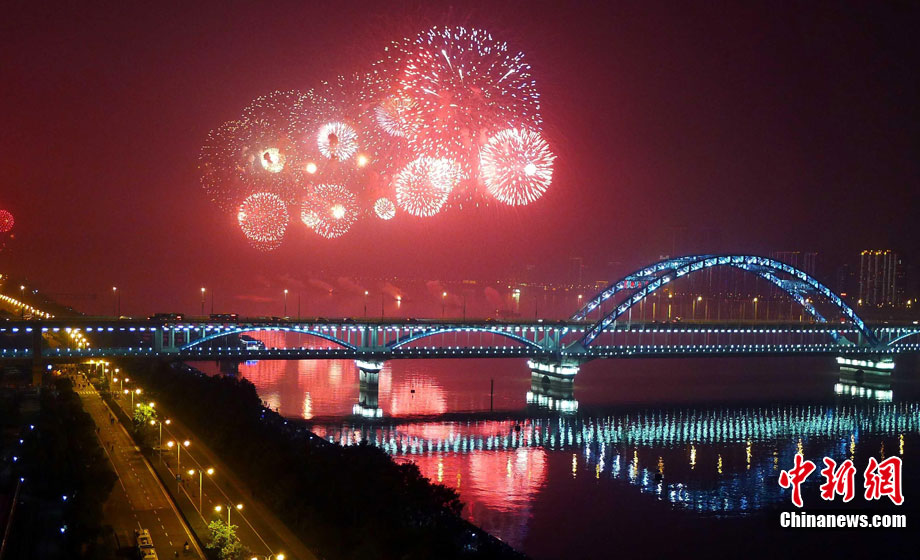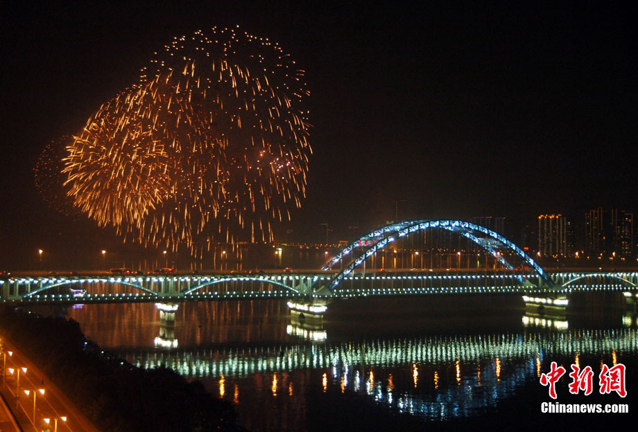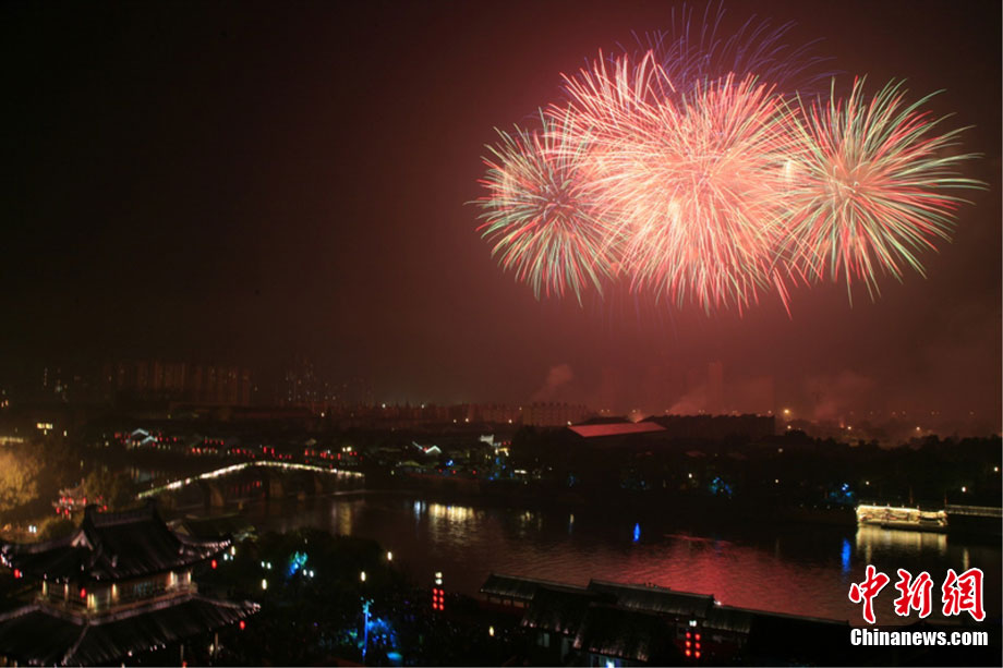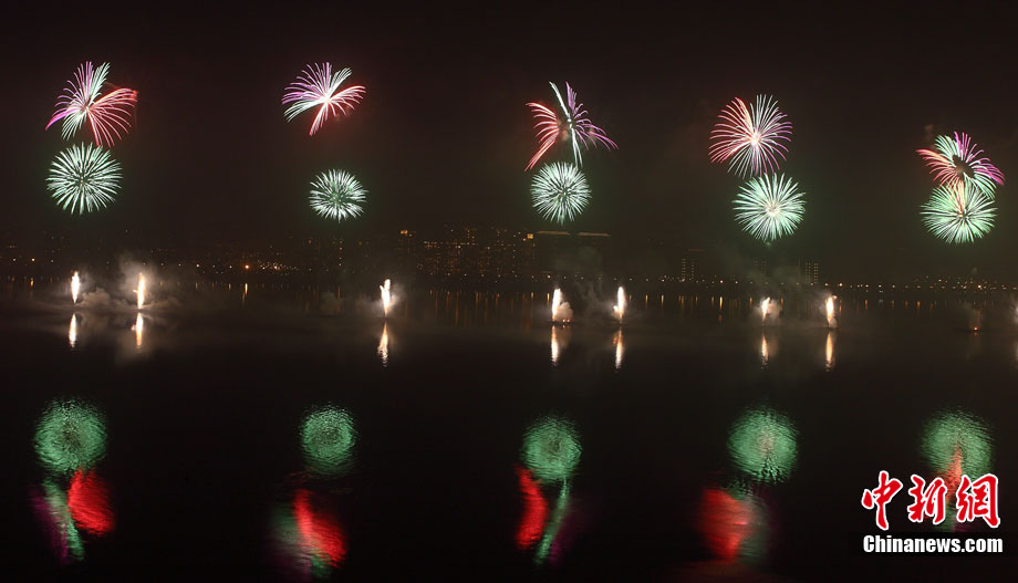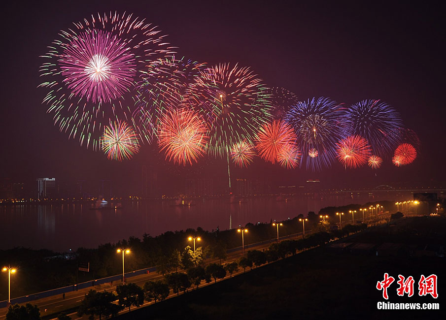 10月16日,作為2010杭州國際煙花大會(huì)分會(huì)場,璀璨旖旎的煙花再次在運(yùn)河上空綻放。16萬發(fā)煙花持續(xù)近40分鐘的燃放再次點(diǎn)亮千年運(yùn)河的夜空,上演一場夢幻般的視覺盛宴。中新社發(fā) 夏毅 攝