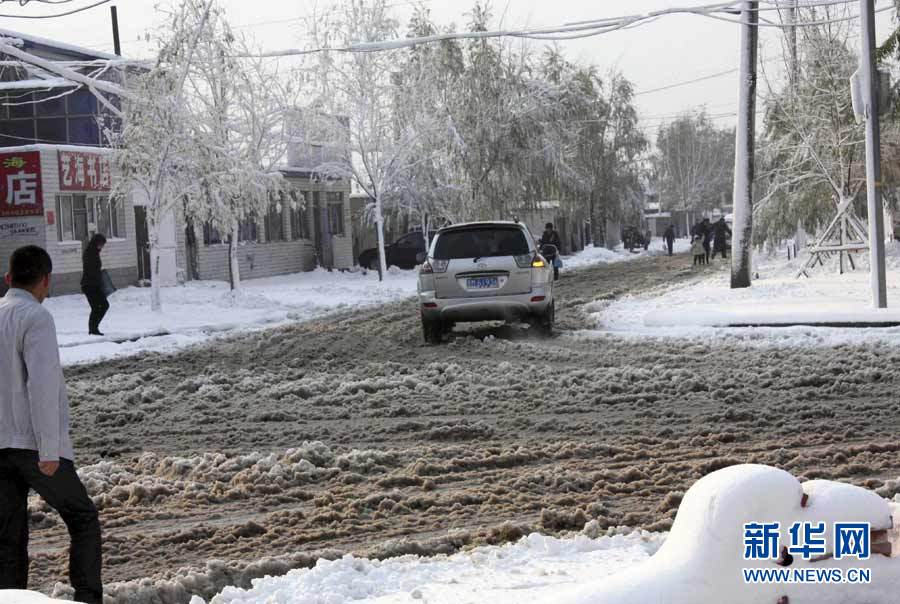 中央氣象臺(tái)近日發(fā)布消息,受3股冷空氣影響,新疆、西藏、青海、甘肅、黑龍江和內(nèi)蒙古等9省區(qū)入冬在即。圖為10月16日,黑龍江省七臺(tái)河市降雪,市民打著傘冒雪出行。秦存廣 攝 圖片來(lái)源:新華網(wǎng)
