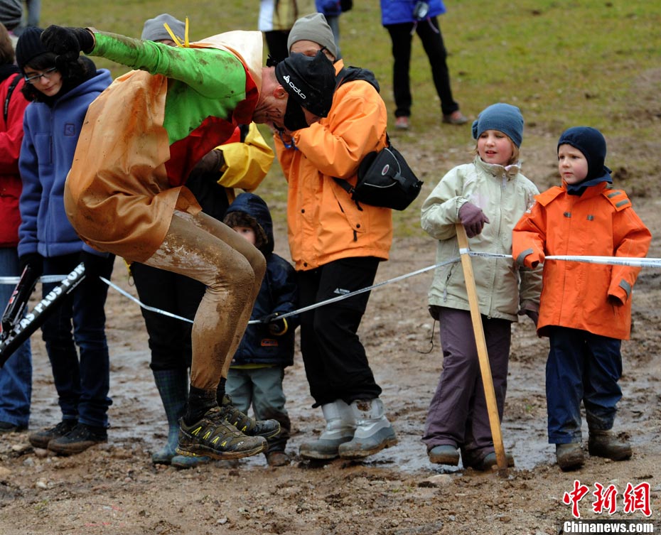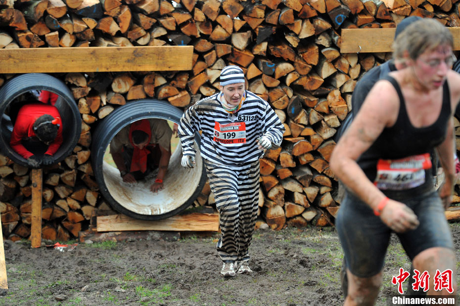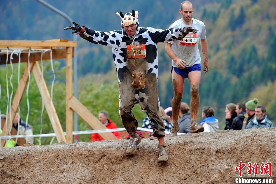 當?shù)貢r間2010年10月17日,法國東部布雷斯(La Bresse)人們參加漁夫“狂奔”跑步大賽。